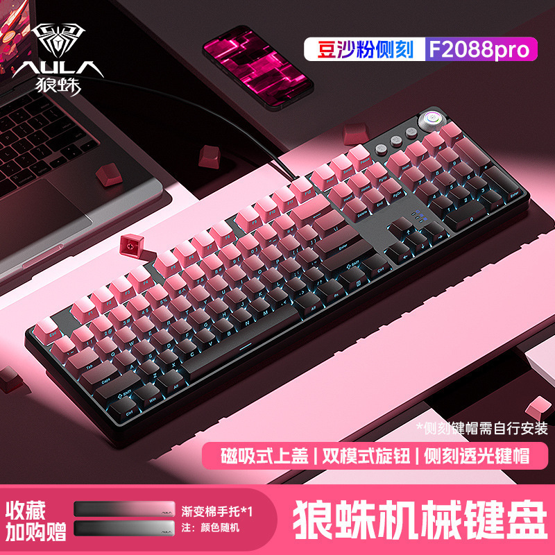 • 빨간색 축-[타오야오 파우더] 측면 각인 그라데이션 키보드 및 마우스 세트-무료 대형 마우스 패드 + 손 받침대-공식 표준