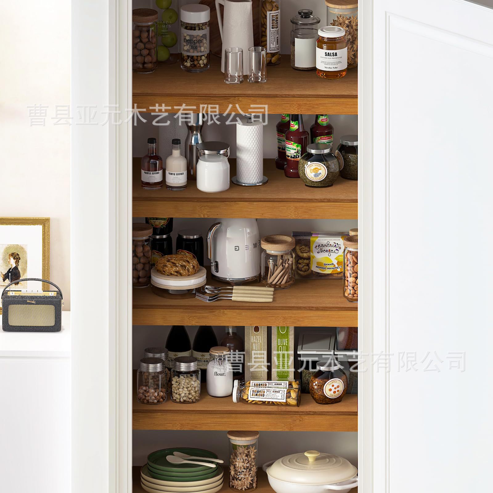 단단한 나무 선반 수납 선반 옷장 주방 계층화 된 수납 선반 이동식 옷장 욕실 수납 선반 칸막이