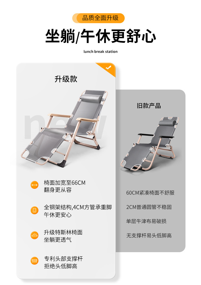 안락 의자 접이식 점심 휴식 의자 등받이 게으른 의자 성인 낮잠 접이식 의자 홈 안락 의자 침대 휴대용 해변 의자스토어 가기