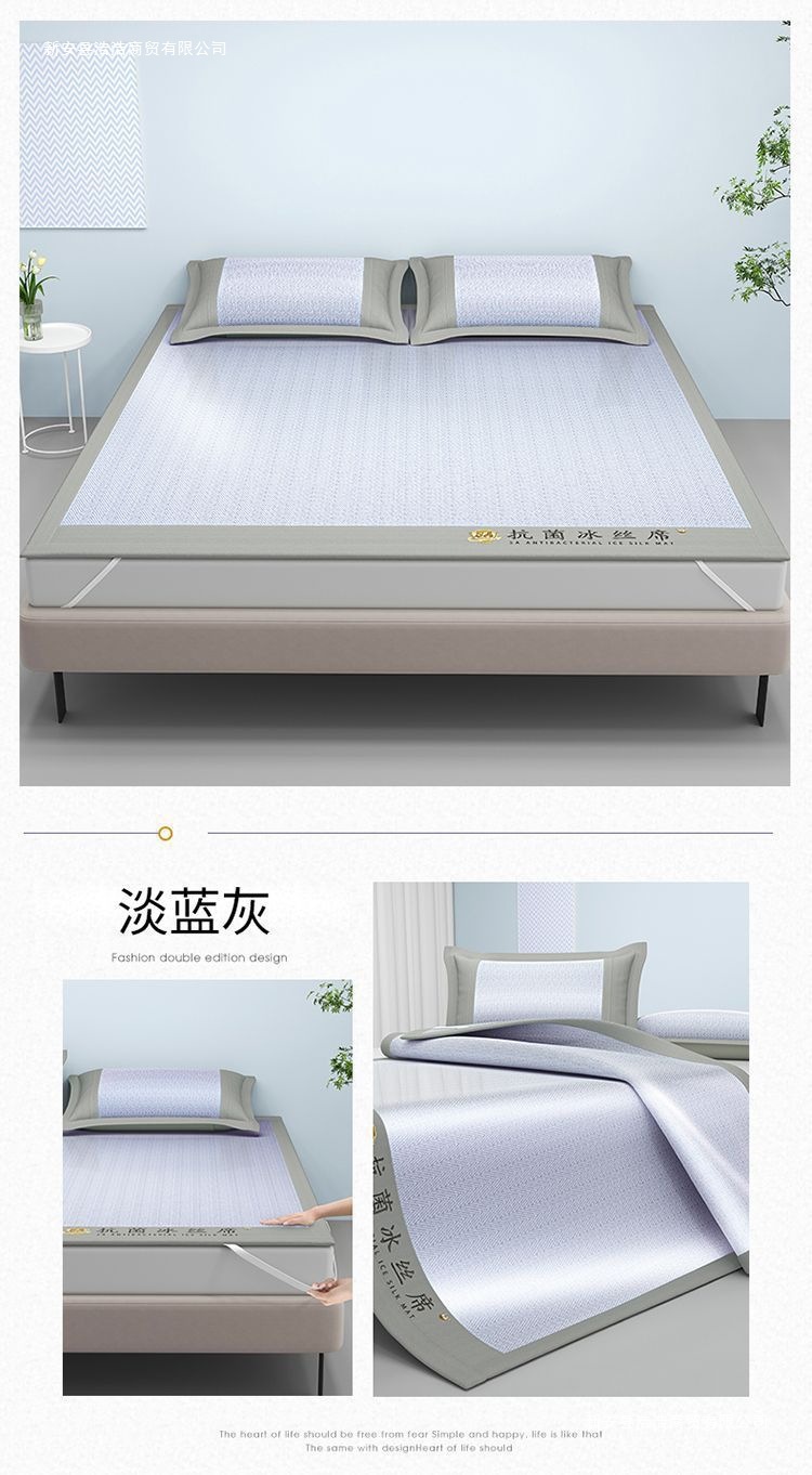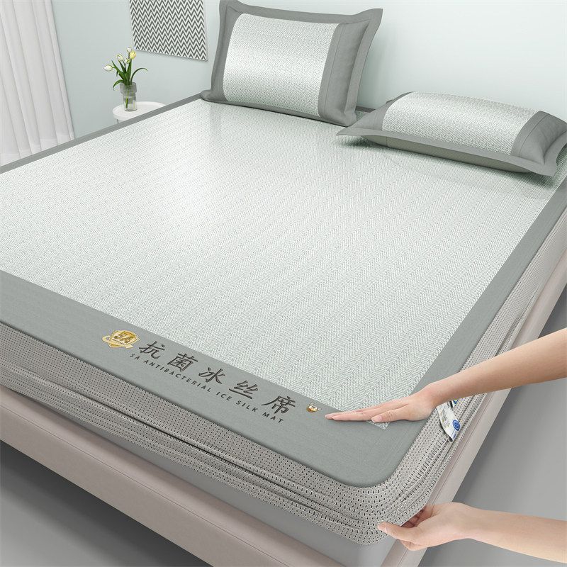 새로운 항균 매트, 아이스 실크 매트, 세탁기로 세탁 가능한 3피스 아이스 실크 매트리스 커버, 완전히 둘러싸인 여름 매트스토어 가기