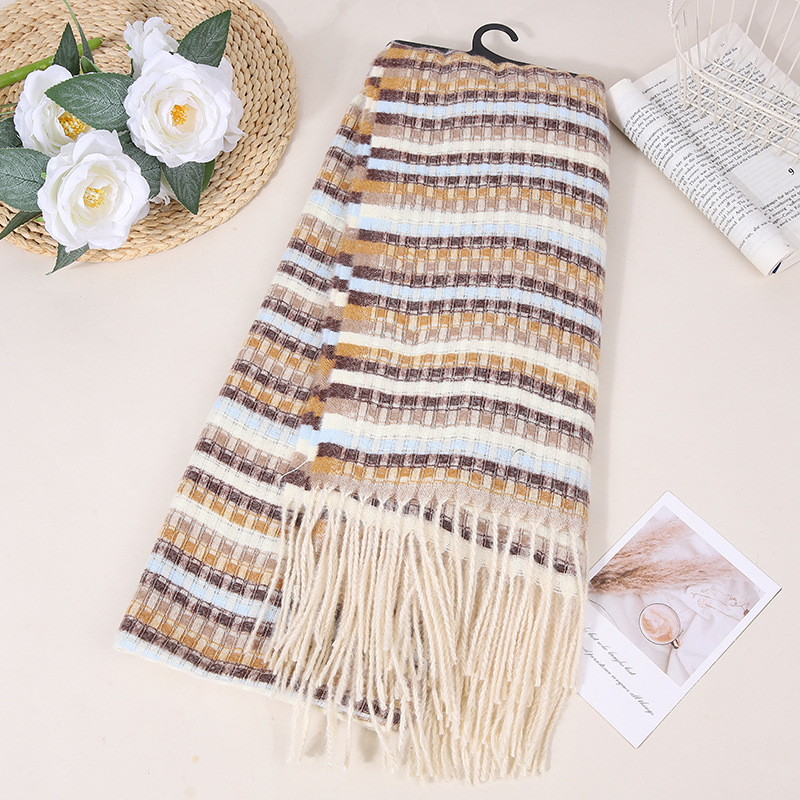 여성용 세련된 모조 캐시미어 컬러풀한 샤그 태슬 스카프, 따뜻하고 우아한 스타일의 아티스틱 스타일의 숄스토어 가기