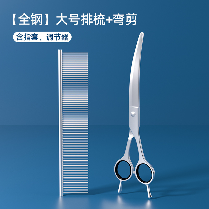 • 애완동물 빗 [대형] + 곡선 가위 7inch개 [핑거콧 및 조절 장치 포함]