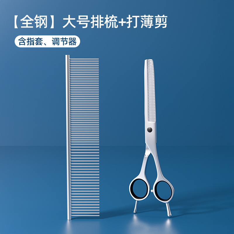 • 애완동물 빗 [대형] + 가위 6.5inch개 [핑거콧, 조절기 포함]