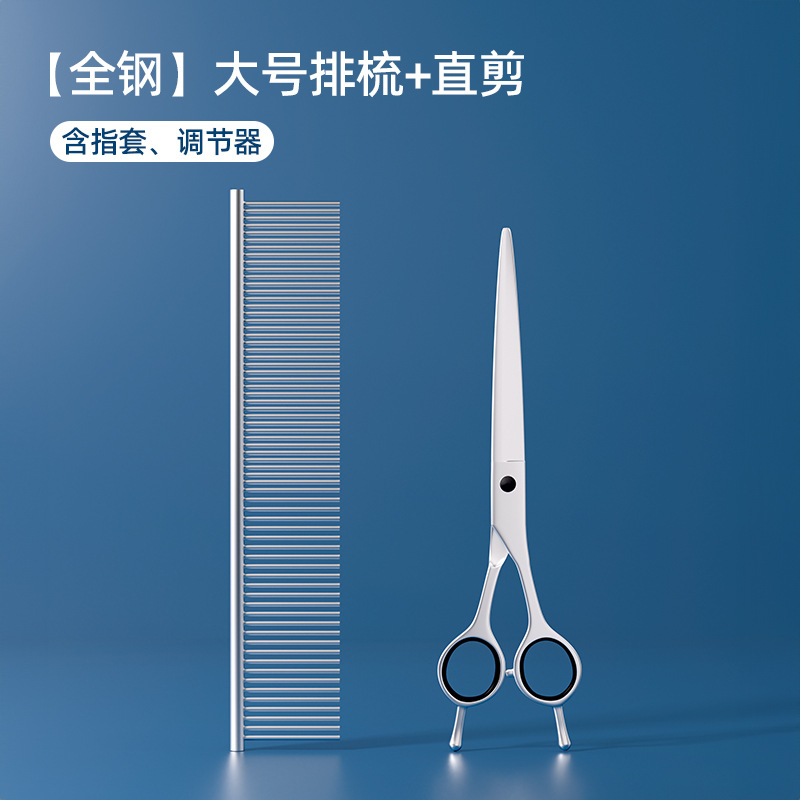 • 펫 빗 [대형] + 스트레이트 컷 7inch개 [핑거콧, 어저스터 포함]