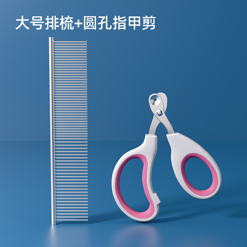 • 애완동물 빗 [대형] + 둥근 구멍 손톱깎이 [빨간색과 흰색]