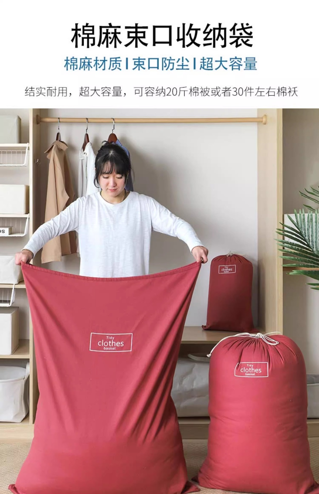 두꺼운 면 및 린넨 대용량 이불 보관 가방, 휴대용 이동 수하물 가방, 가정용 의류 방진 조임끈 보관스토어 가기