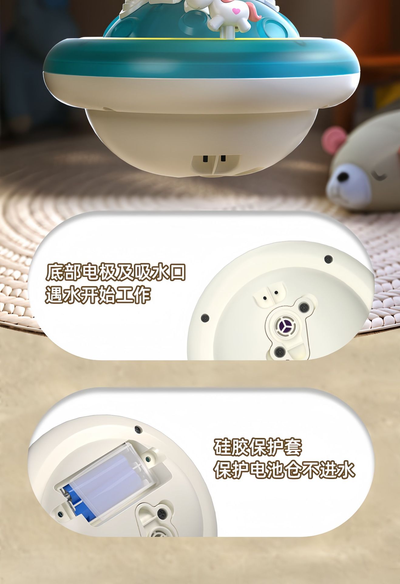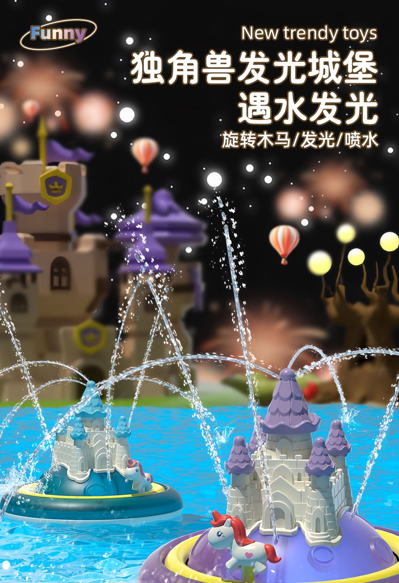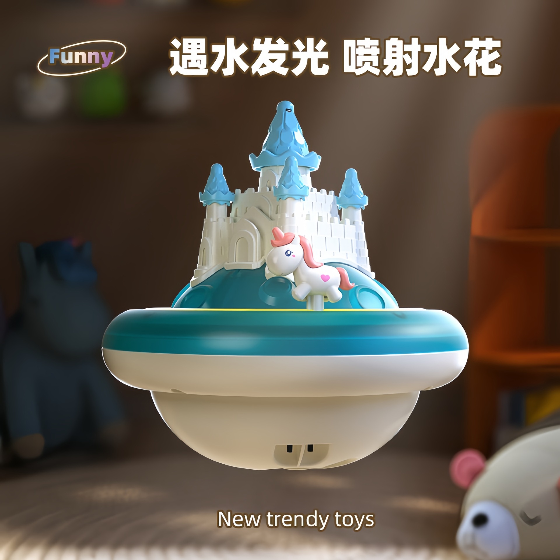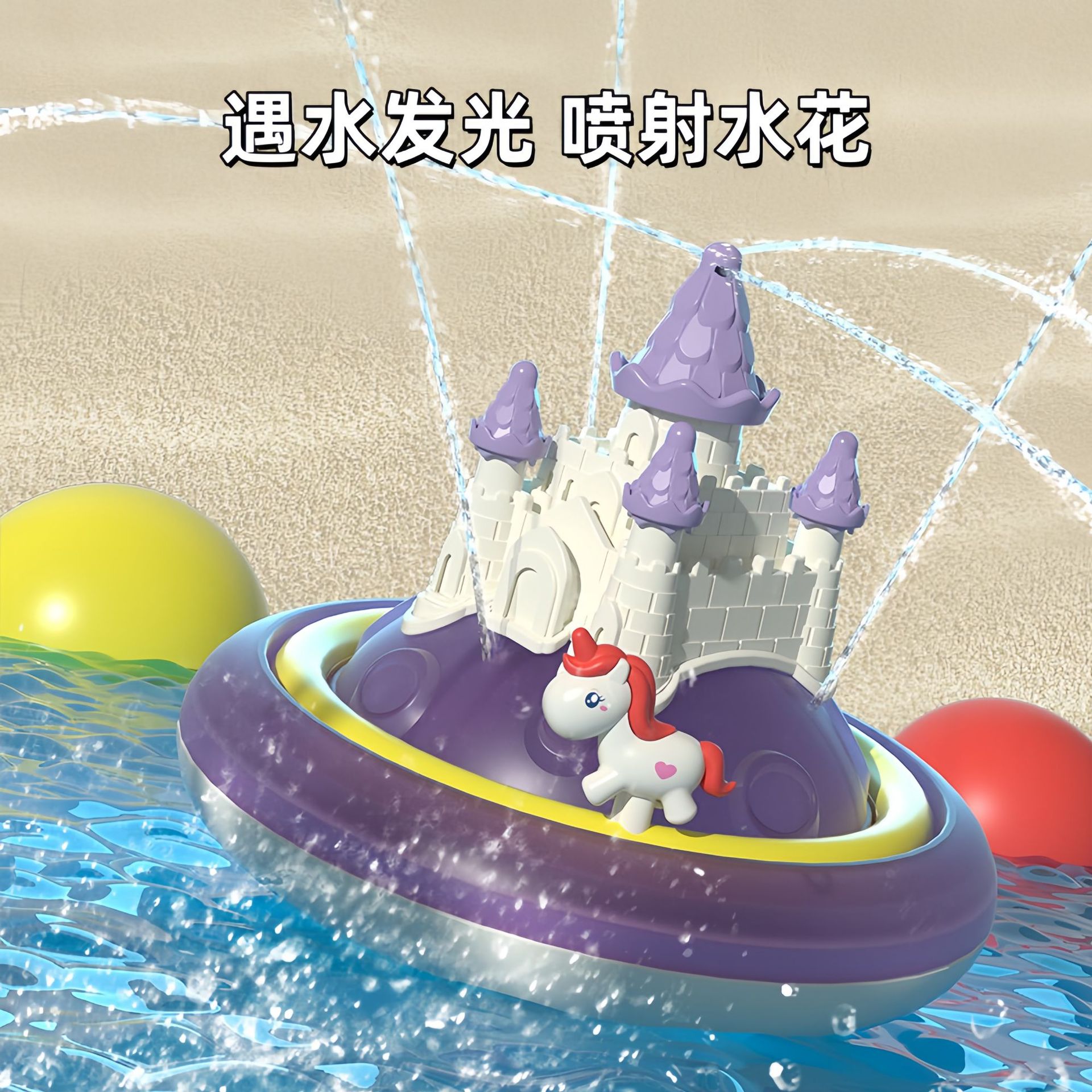 국경 간 어린이 욕실 목욕 장난감 물 놀이 성 물 스프레이 공 전기 회전 물 스프레이 빛나는 물 놀이 장난감스토어 가기