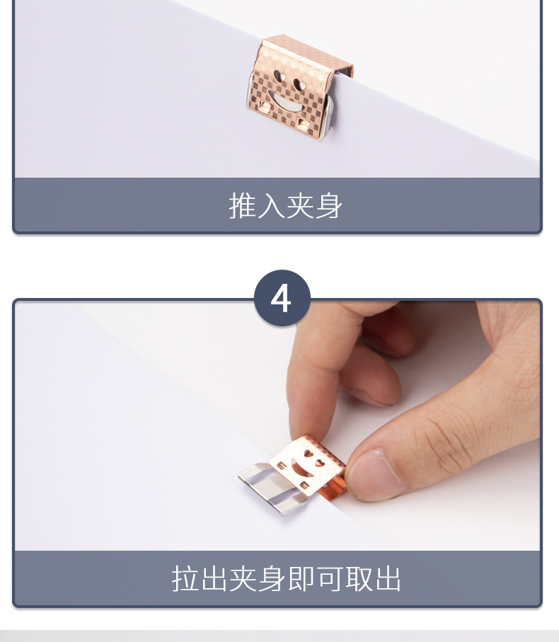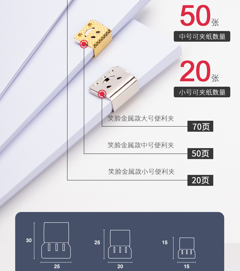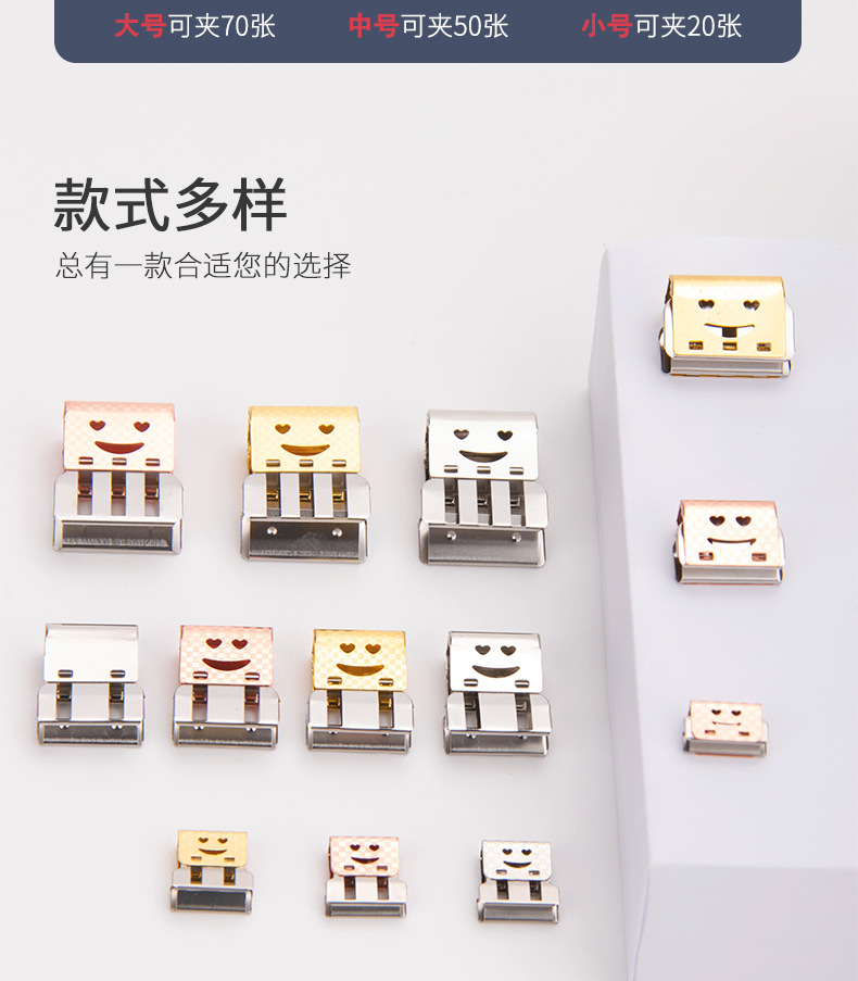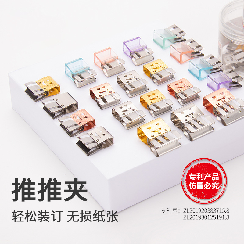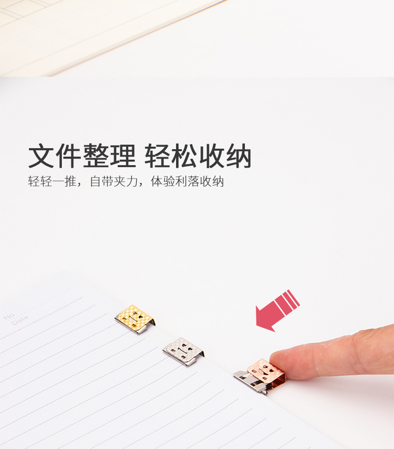 창의적인 웃는 얼굴 금속 푸시 클립, 롤링 방지 고정 장치, 편리한 클립, 시험지 파일 보관 유물, 슬라이딩 클립스토어 가기