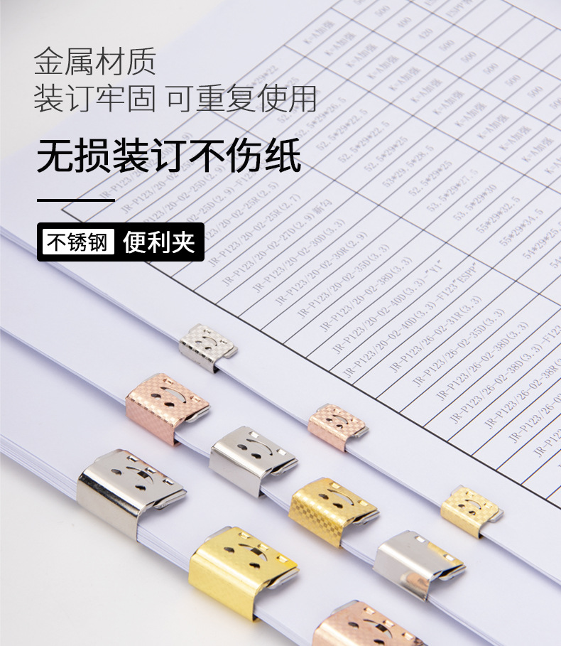 창의적인 웃는 얼굴 금속 푸시 클립, 롤링 방지 고정 장치, 편리한 클립, 시험지 파일 보관 유물, 슬라이딩 클립
