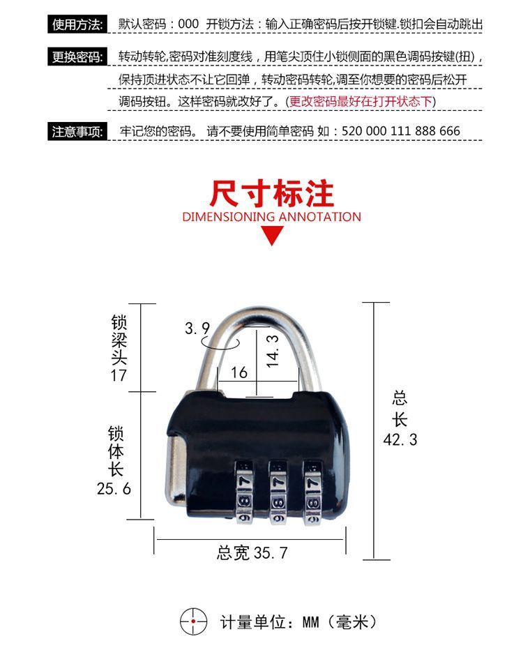 비밀번호 잠금 장치 소형 자물쇠 캐비닛 잠금 장치 배낭 가방 체육관 학생 기숙사 문 와이어 미니 자물쇠 헤드스토어 가기