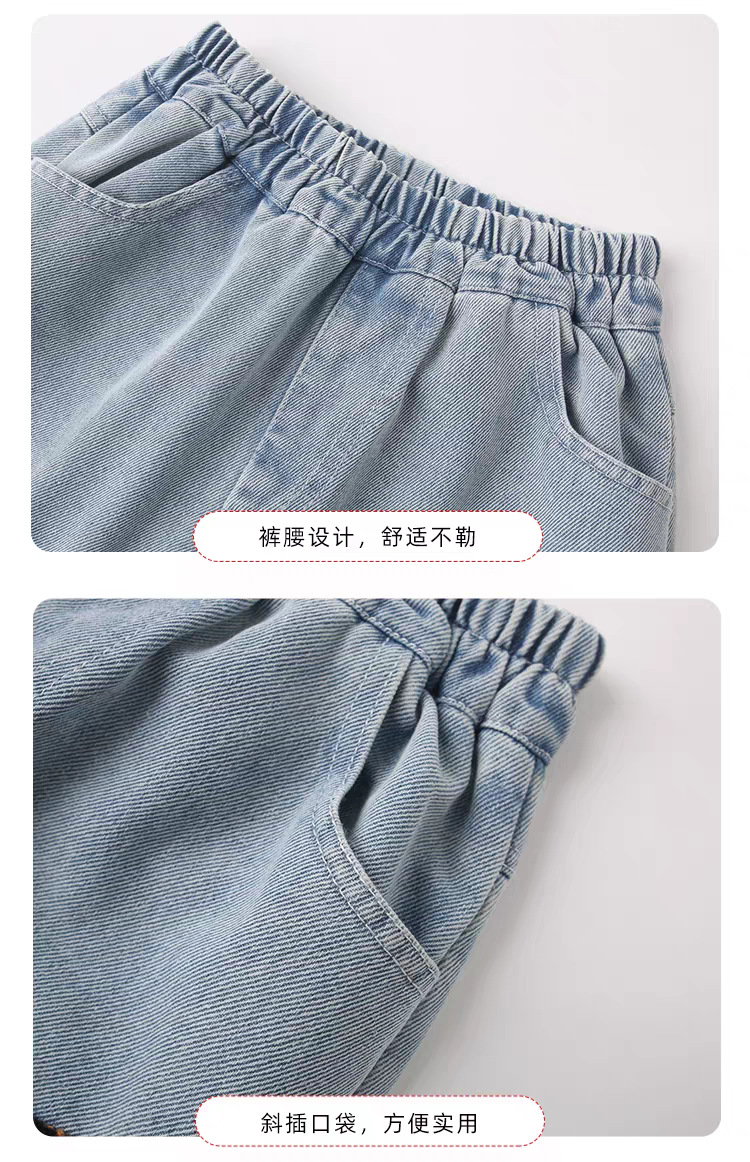 여아 청바지 봄과 가을 새로운 스타일 중대형 어린이 만화 고양이 자수 청바지 어린이 스트레이트 루즈 와이드 레그 팬츠스토어 가기