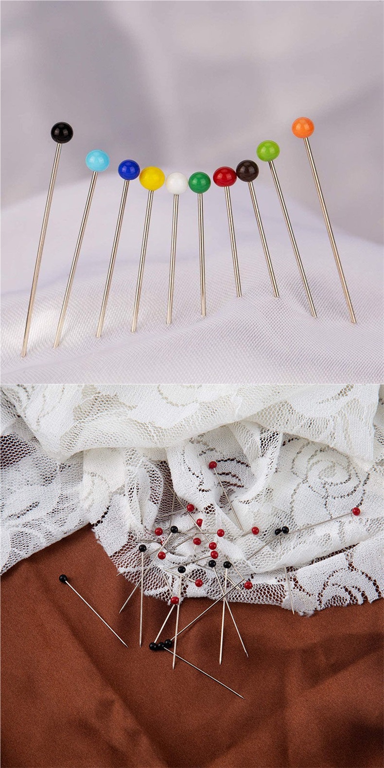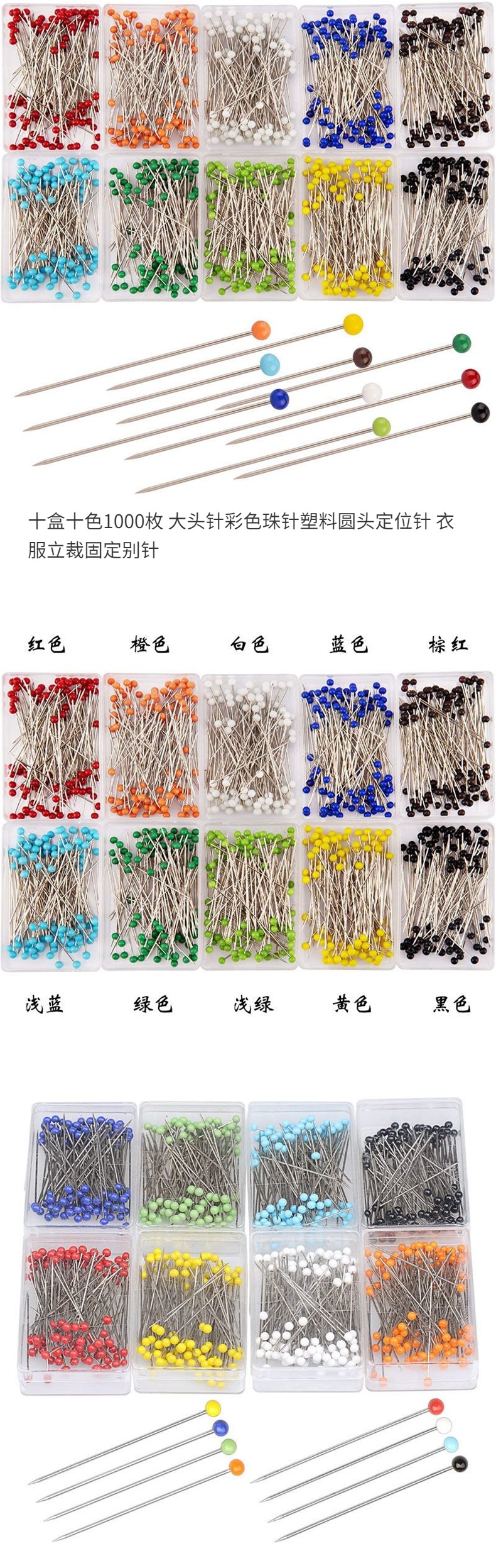 10가지 색상의 바늘 1000개가 들어 있는 상자 10개, 컬러풀한 비즈 바늘, 플라스틱 둥근 머리 포지셔닝 바늘, 의류 커팅 고정 바늘스토어 가기