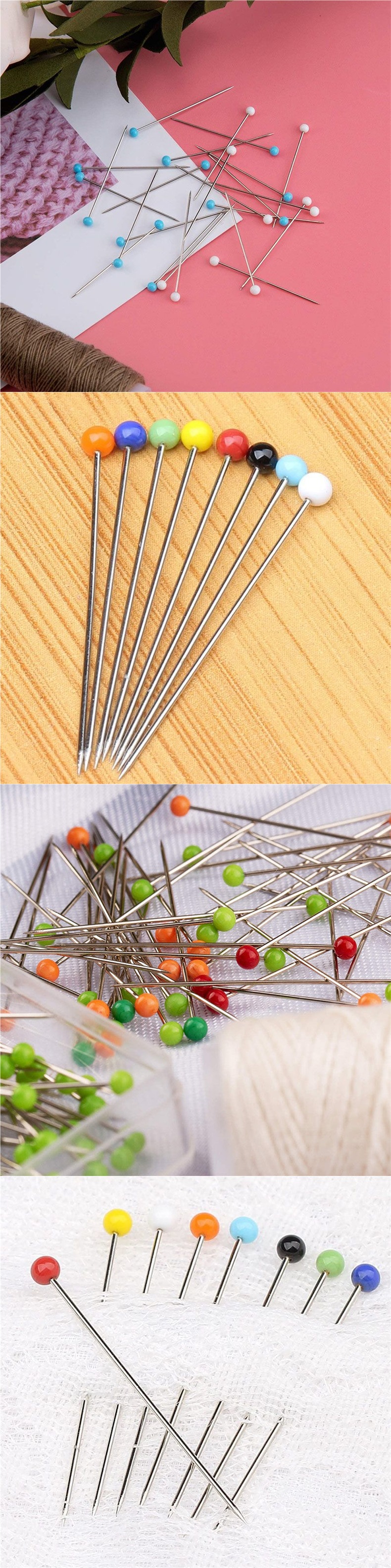 10가지 색상의 바늘 1000개가 들어 있는 상자 10개, 컬러풀한 비즈 바늘, 플라스틱 둥근 머리 포지셔닝 바늘, 의류 커팅 고정 바늘