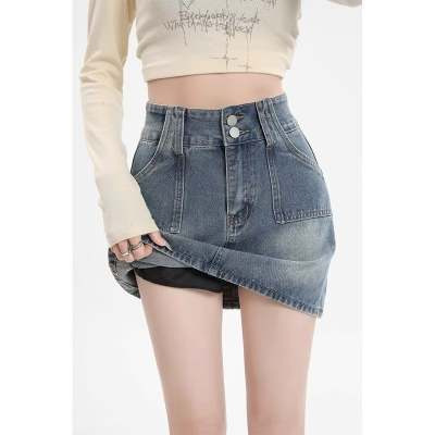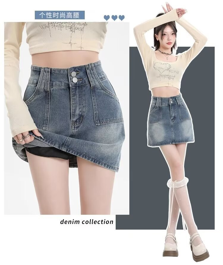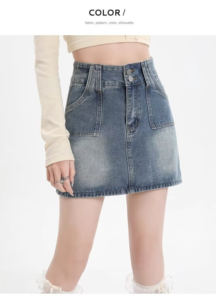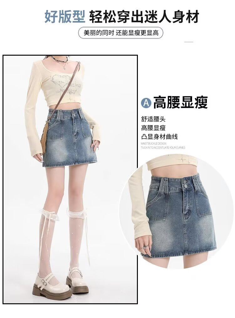 몸집이 작은 소녀들을 위한 하이웨이스트 스커트, 여름 핫걸 숏스커트, 힙커버 스커트, 활용도 높은 레트로 데님 스커트스토어 가기