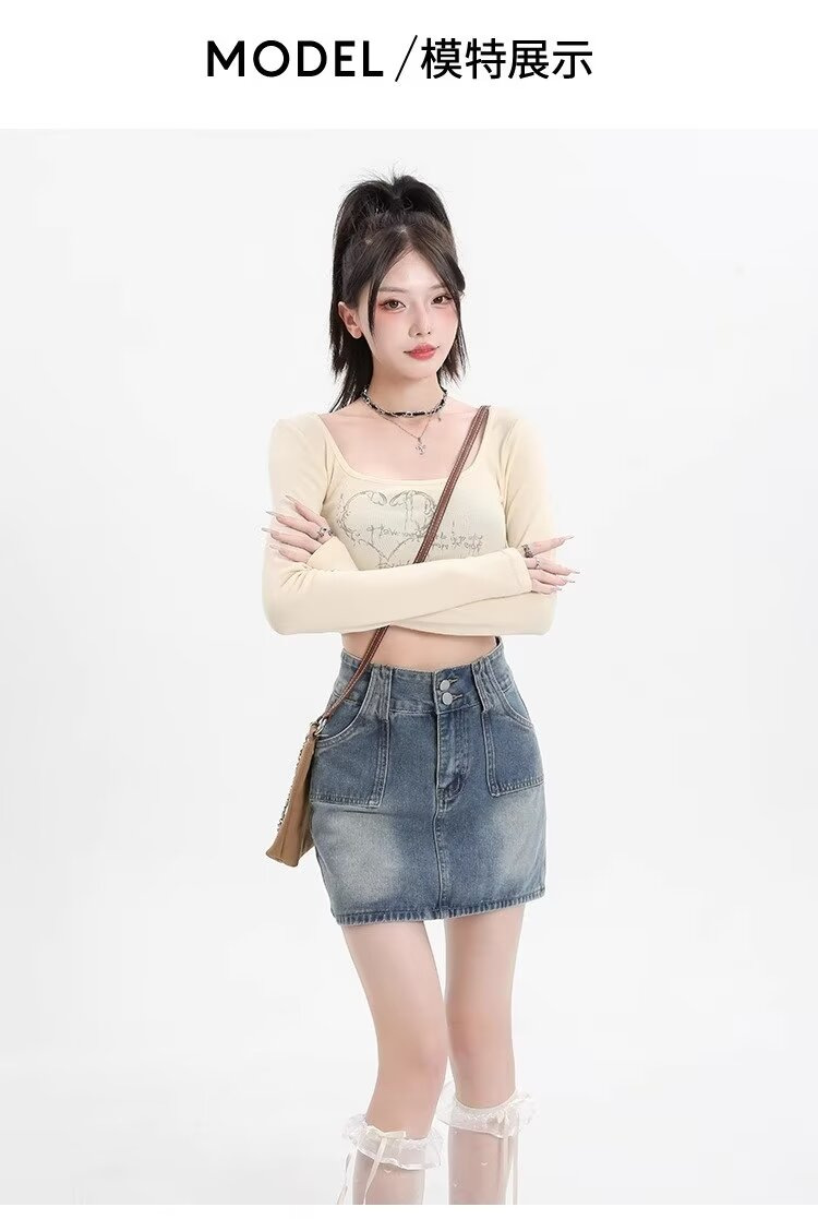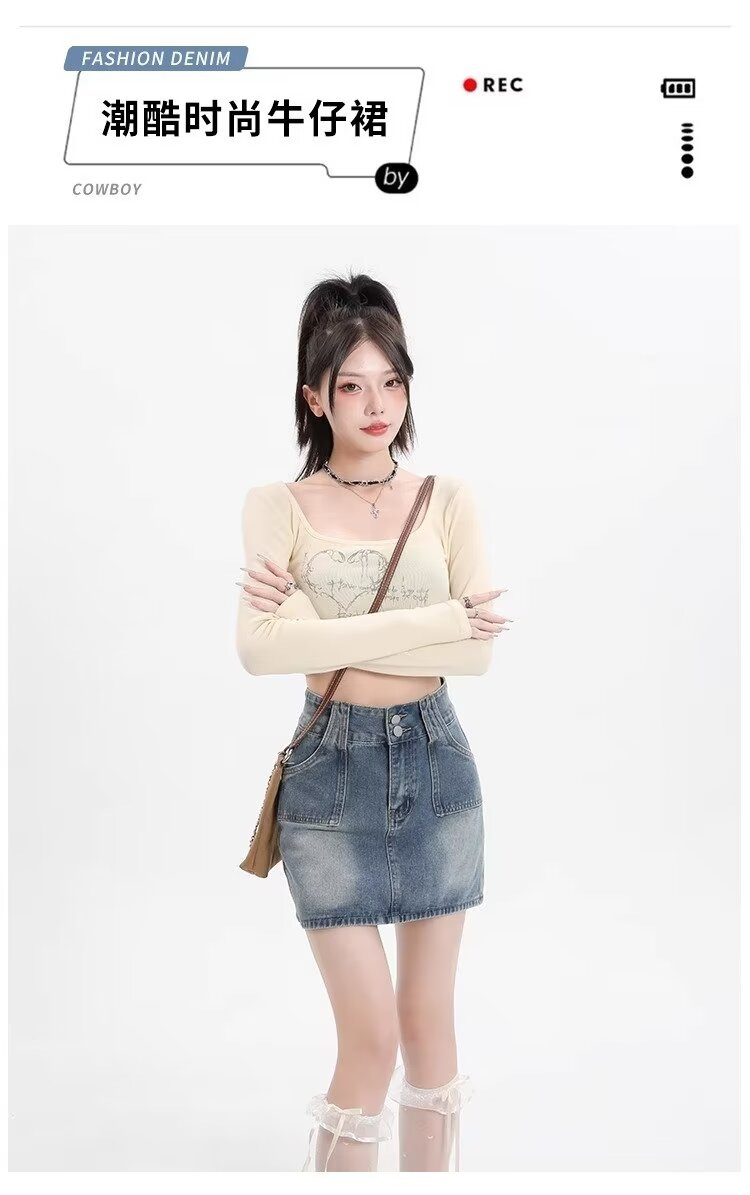 몸집이 작은 소녀들을 위한 하이웨이스트 스커트, 여름 핫걸 숏스커트, 힙커버 스커트, 활용도 높은 레트로 데님 스커트