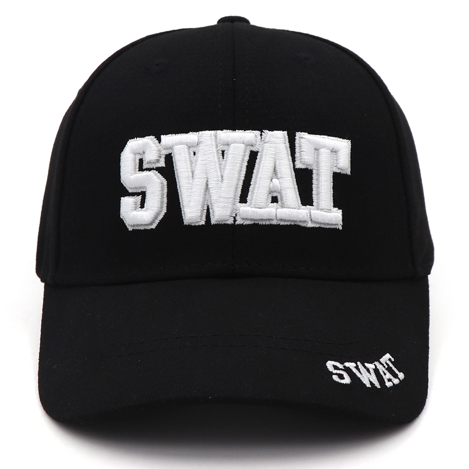 • 흰색 자수가 있는 검은색 모자 SWAT