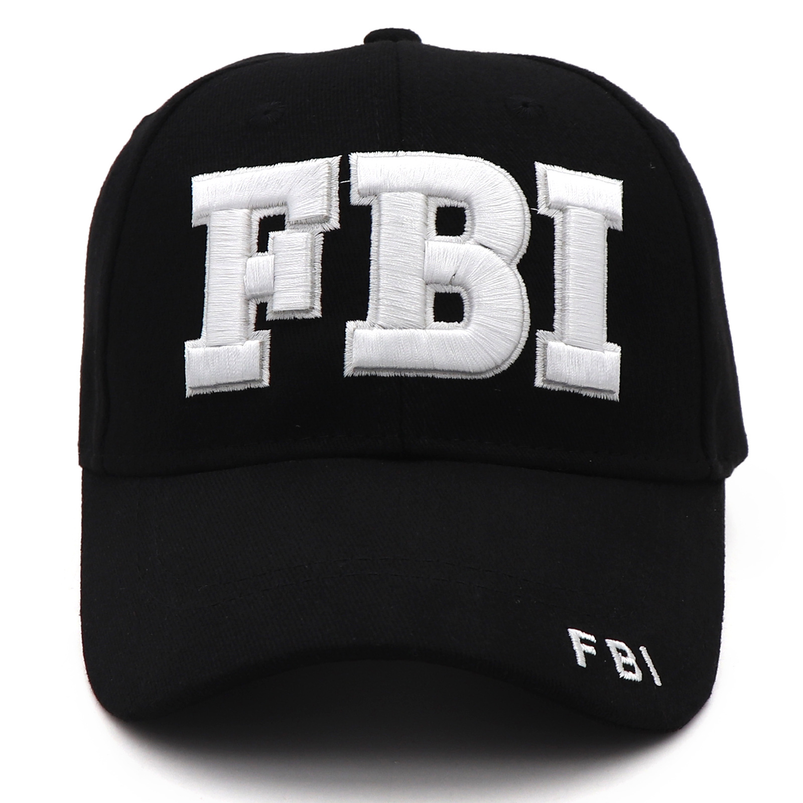 • 검은색 모자에 흰색 자수 FBI