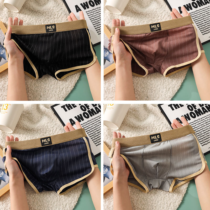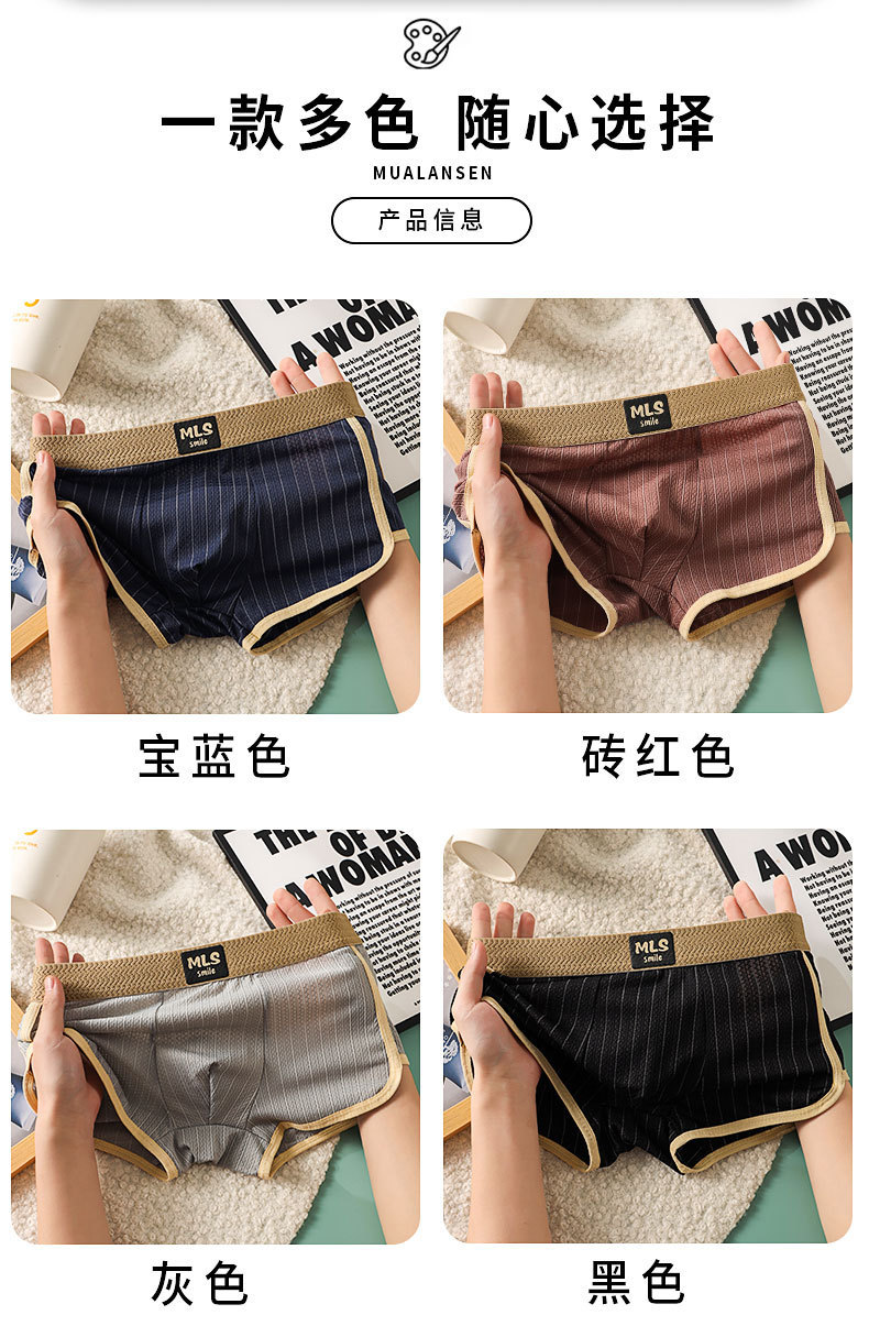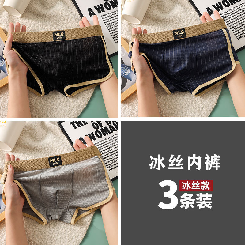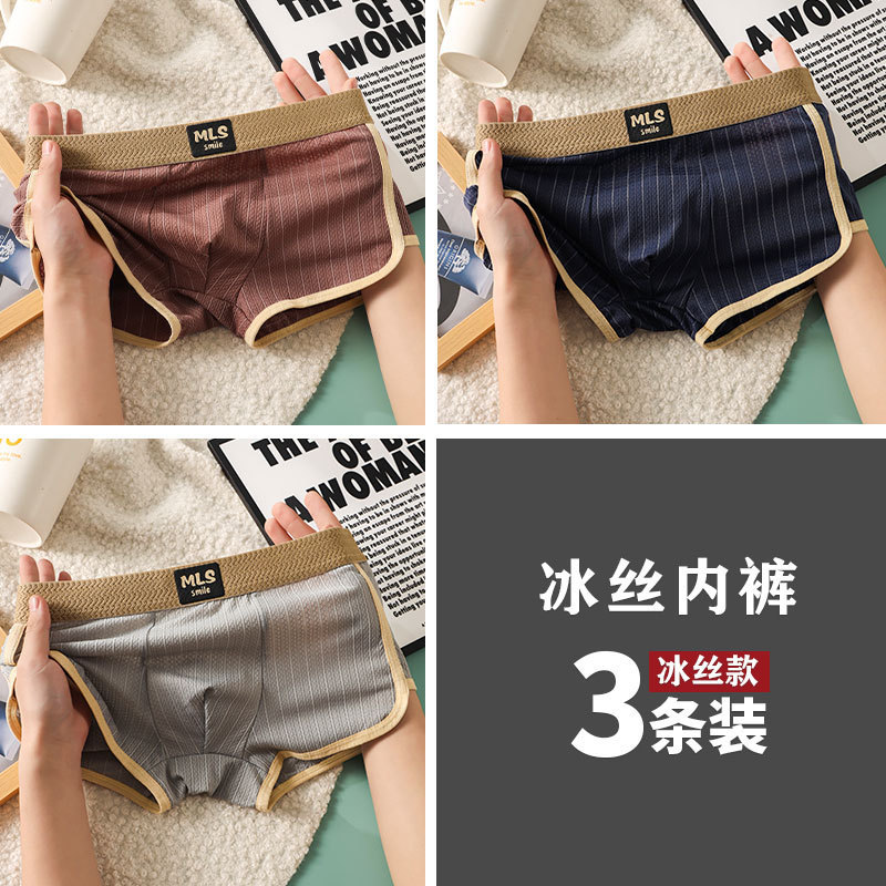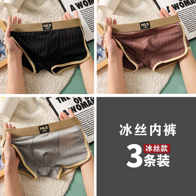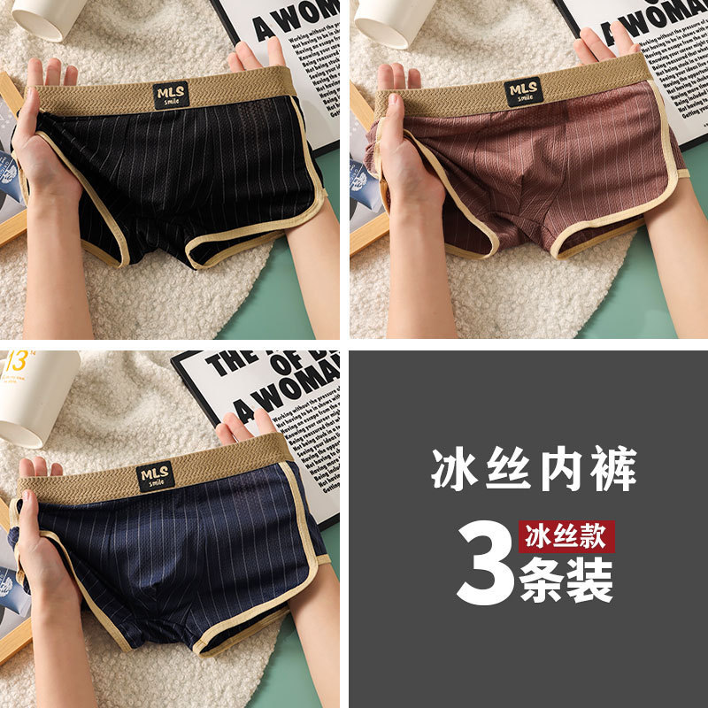 여름 새로운 스타일의 가볍고 통기성이 뛰어난 남성용 아이스 실크 속옷, 시원하고 편안하며 실키한 남아용 복서 팬티스토어 가기