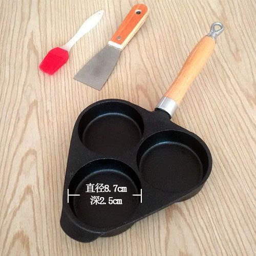 주철 계란 만두 팬 3구 만두 팬 계란 프라이팬 몰드 코팅되지 않은 가정용 붙지 않는 팬 아침 식사 유물 팬