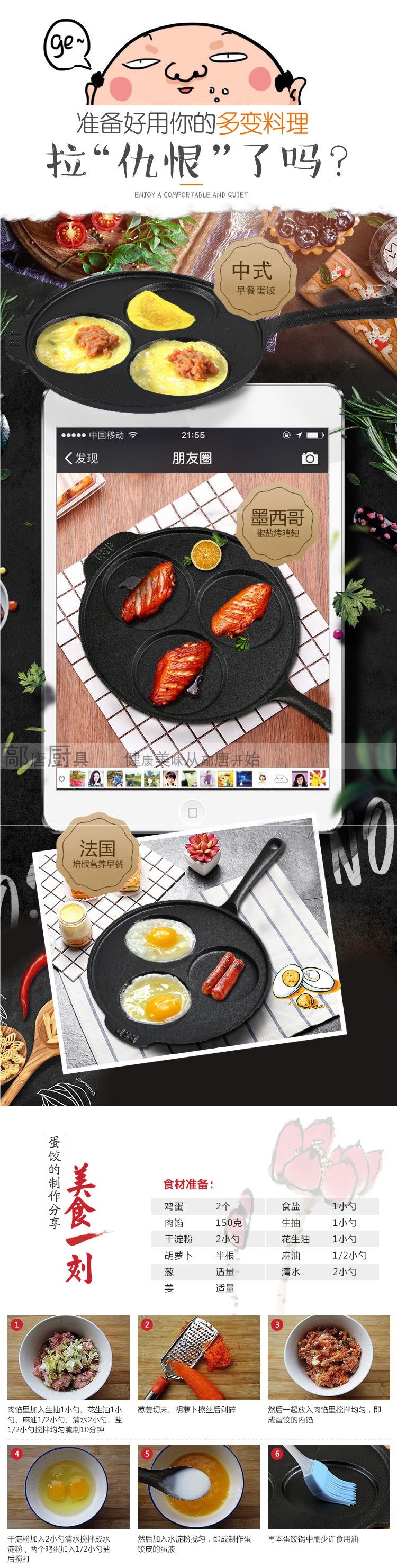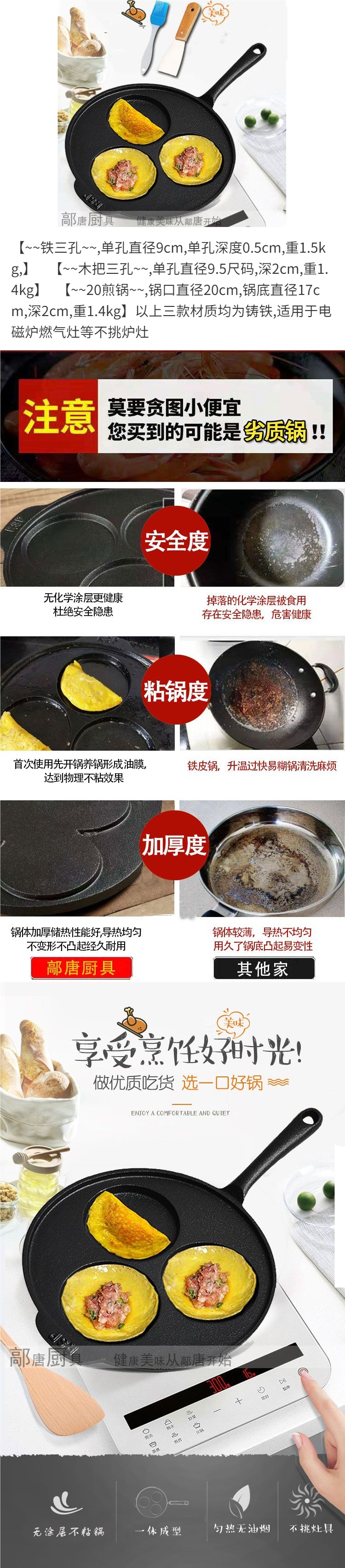 주철 계란 만두 팬 3구 만두 팬 계란 프라이팬 몰드 코팅되지 않은 가정용 붙지 않는 팬 아침 식사 유물 팬스토어 가기