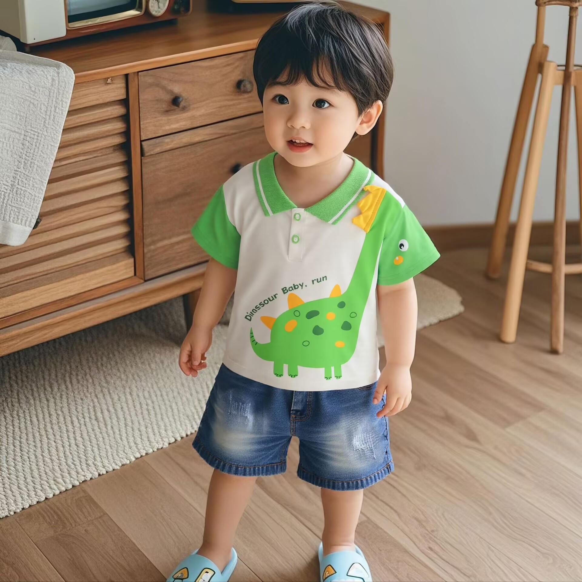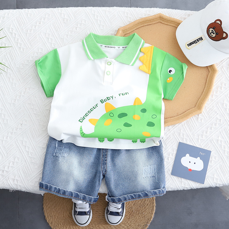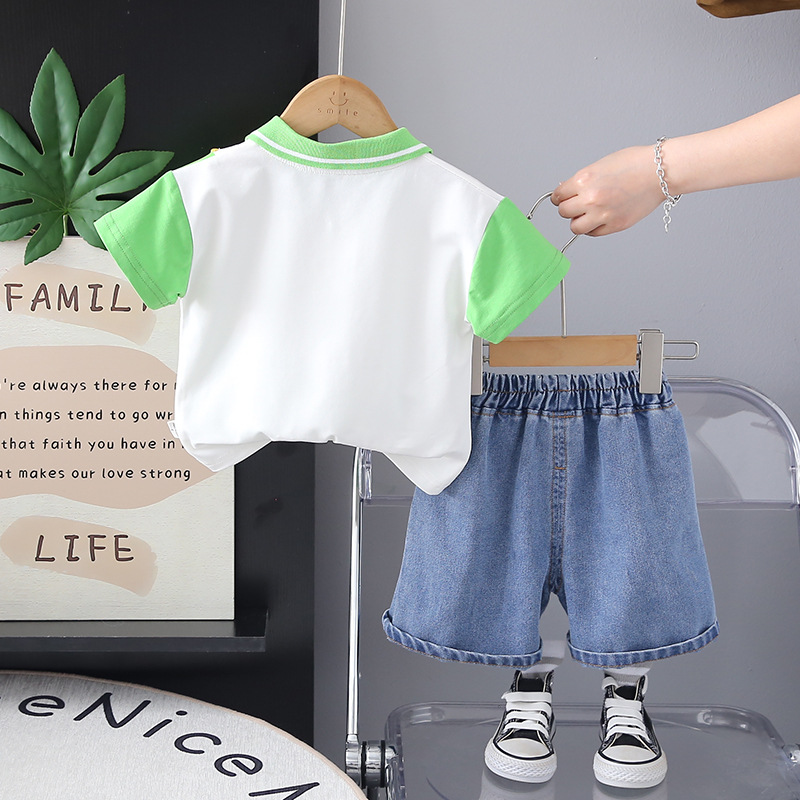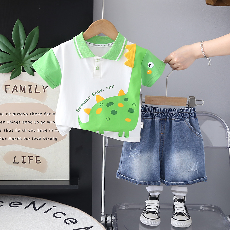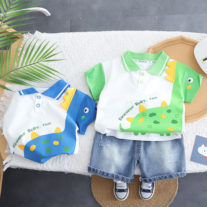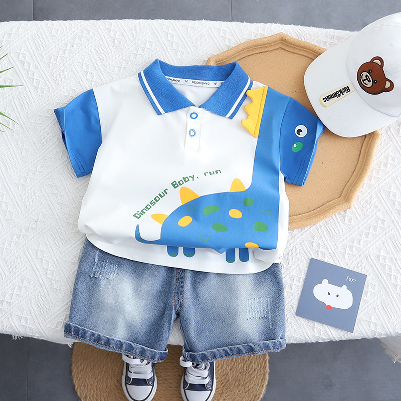 2025 새로운 반팔 양복 아기 여름 얇은 옷 폴로 셔츠 투피스 세트 공장 도매스토어 가기
