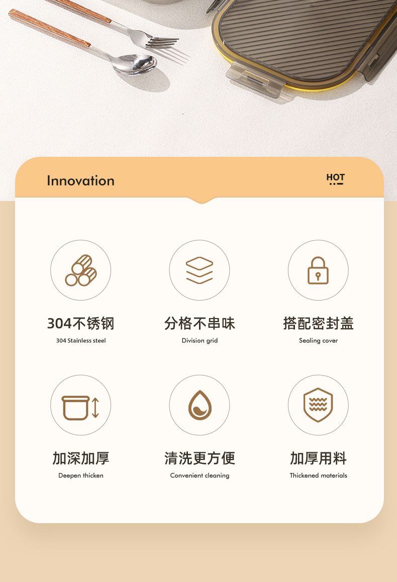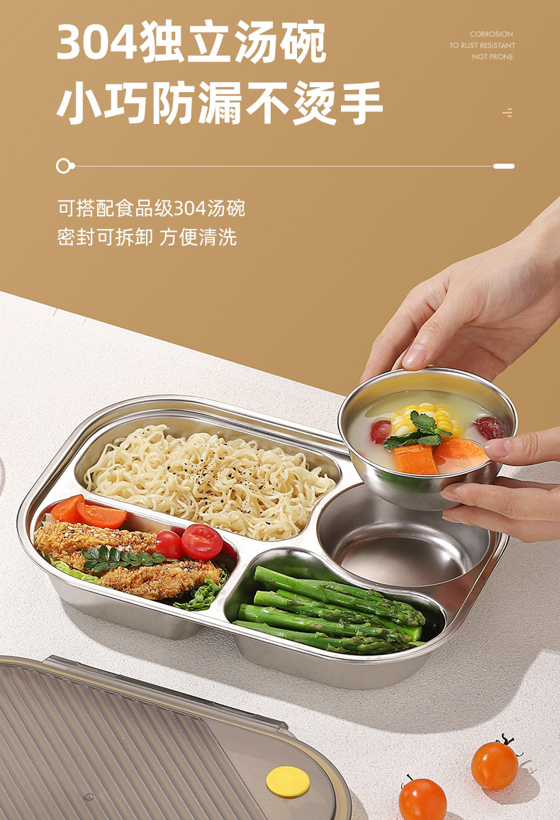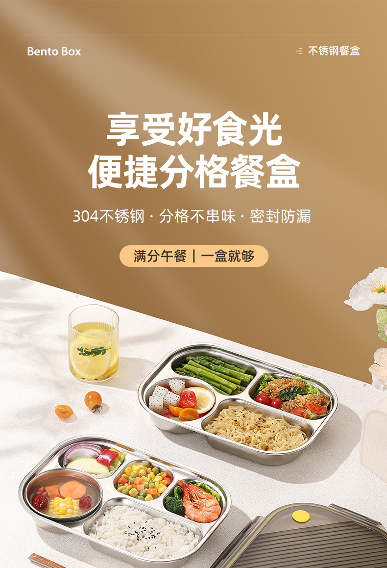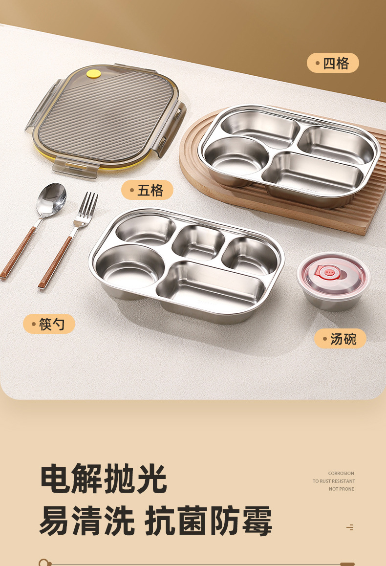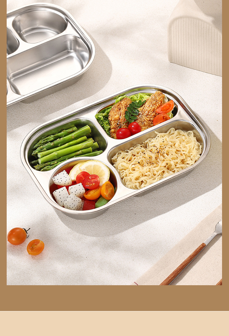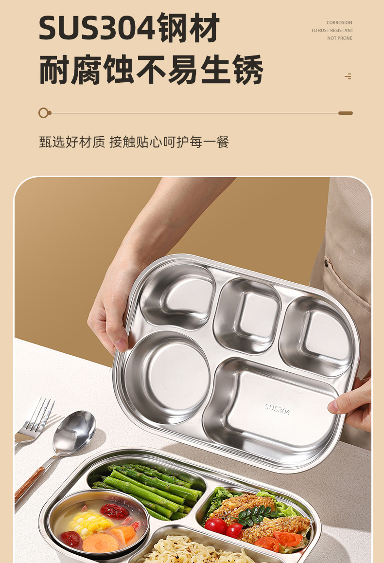 304 스테인레스 스틸 분할 접시 가정용 아기 식사 접시 캔틴 학교 유치원 학생을위한 뚜껑이있는 직원 도시락