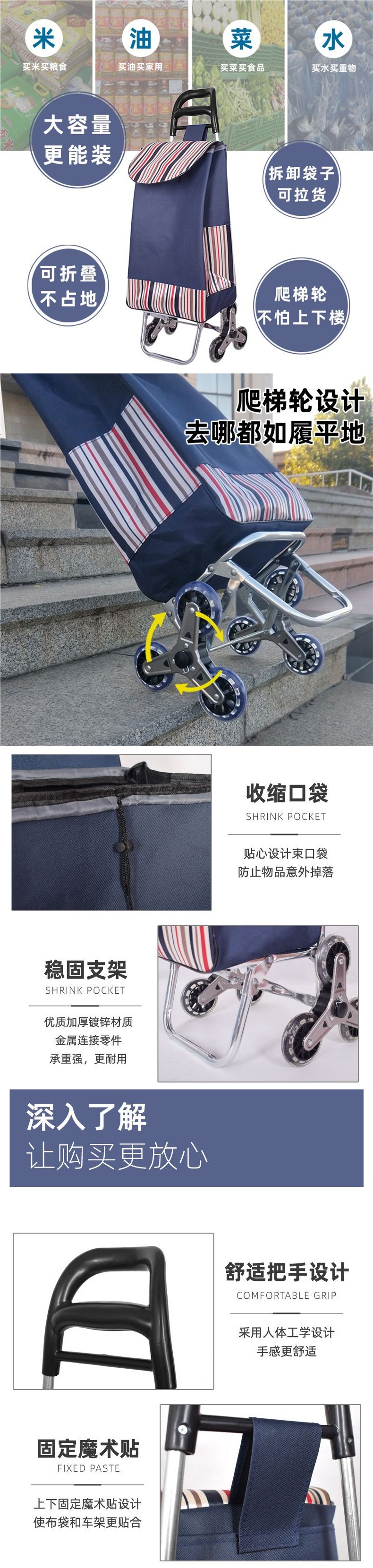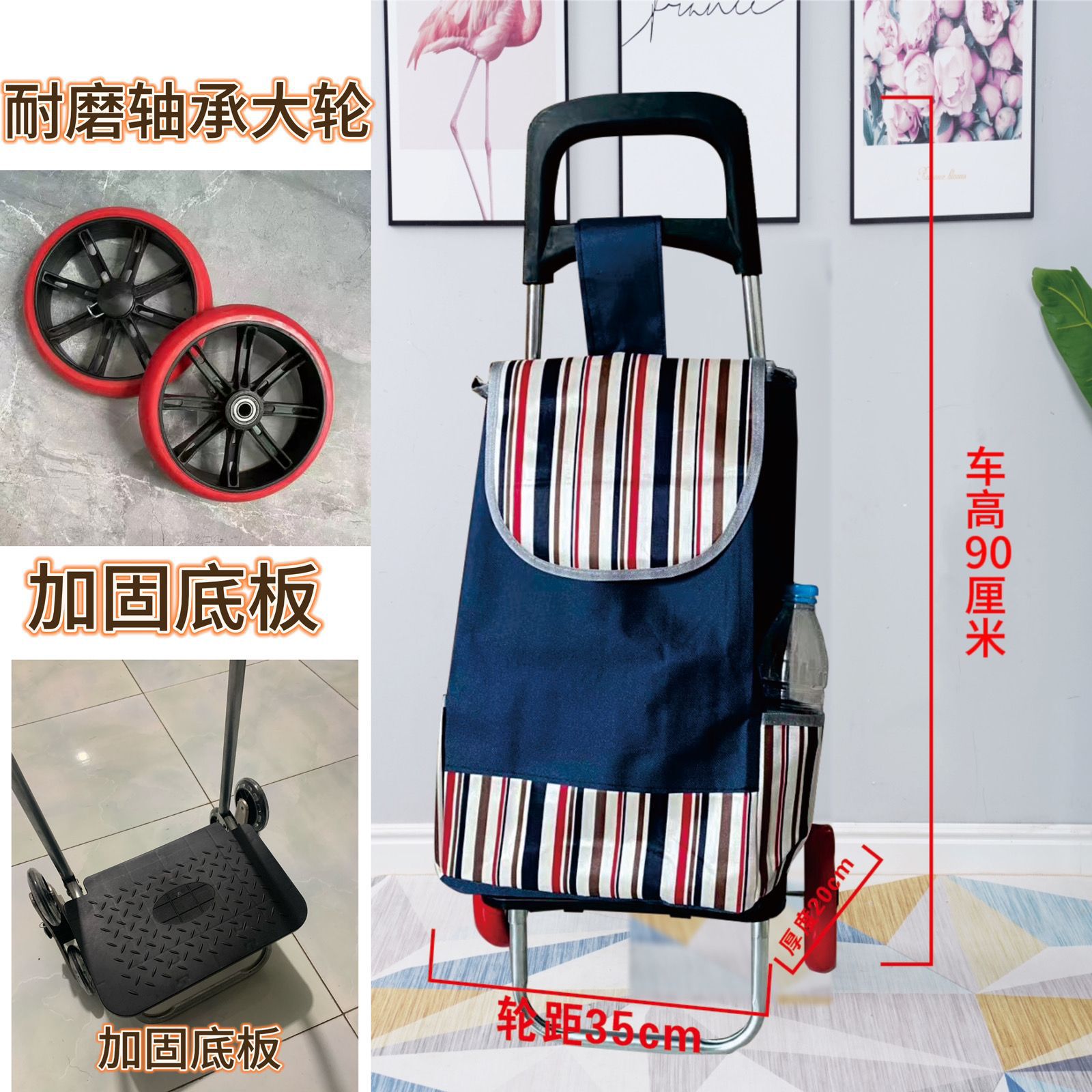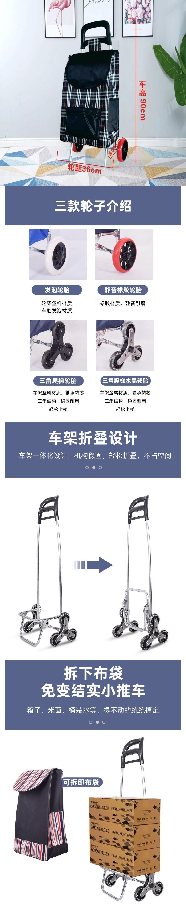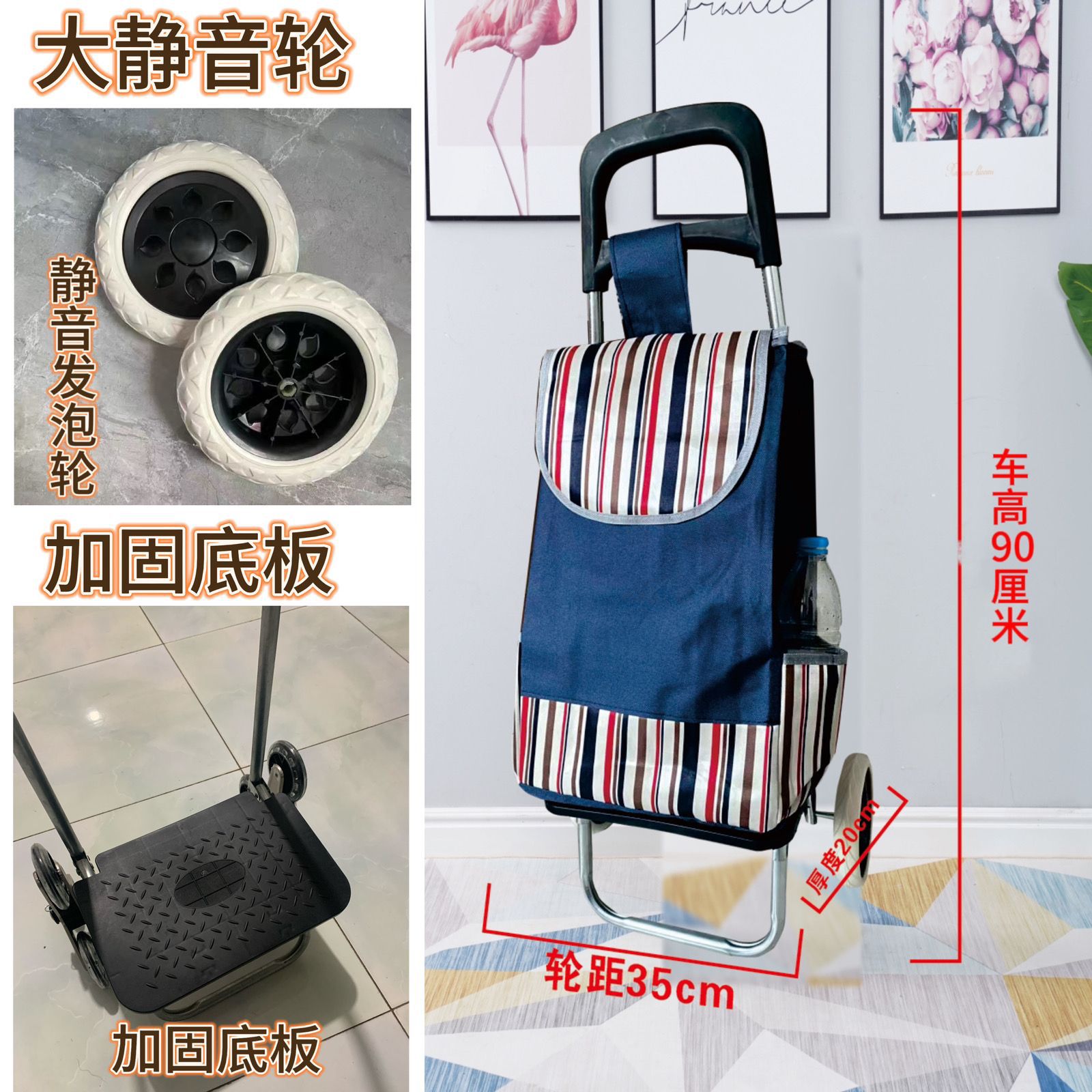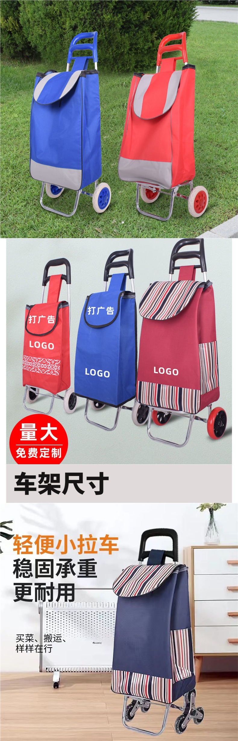 노인들이 식료품을 사기 위한 가정용 손으로 당기는 쇼핑 카트, 접이식 계단 오르기 트롤리, 광고 로고가 새겨진 트롤리