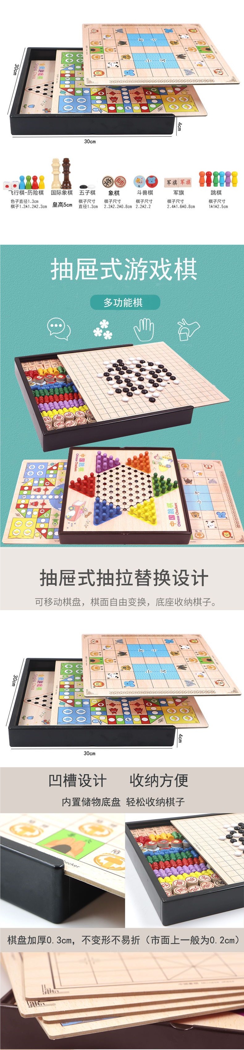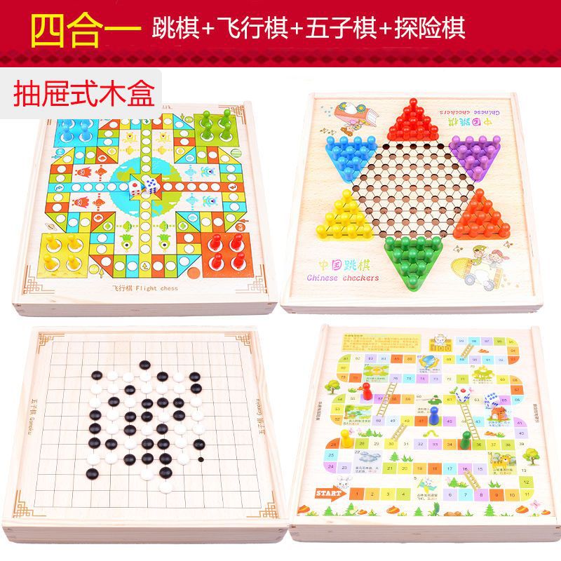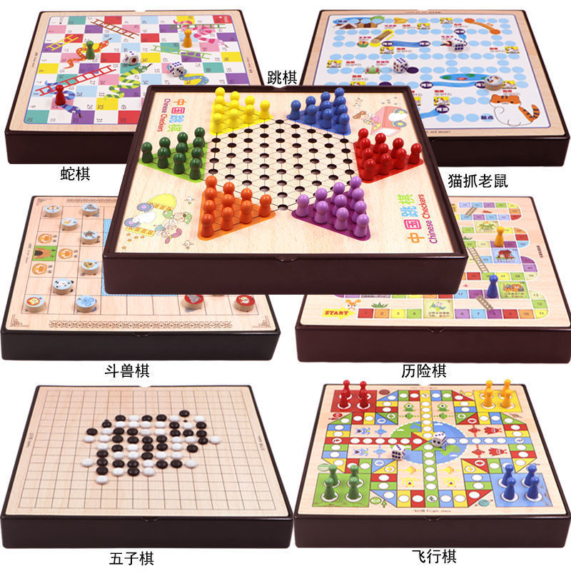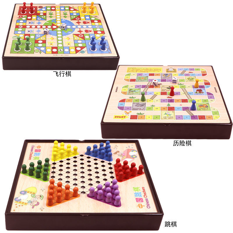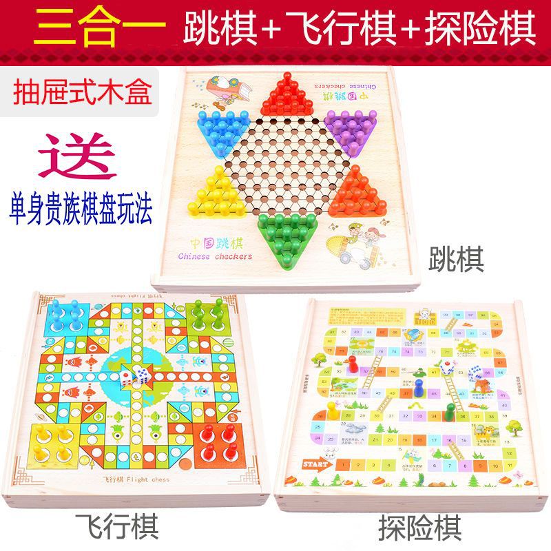 어린이 비행 체스, 체커, 주사위 놀이, 군사 체스, 초등학생 체스, 나무 다기능 게임 체스 교육 장난감스토어 가기