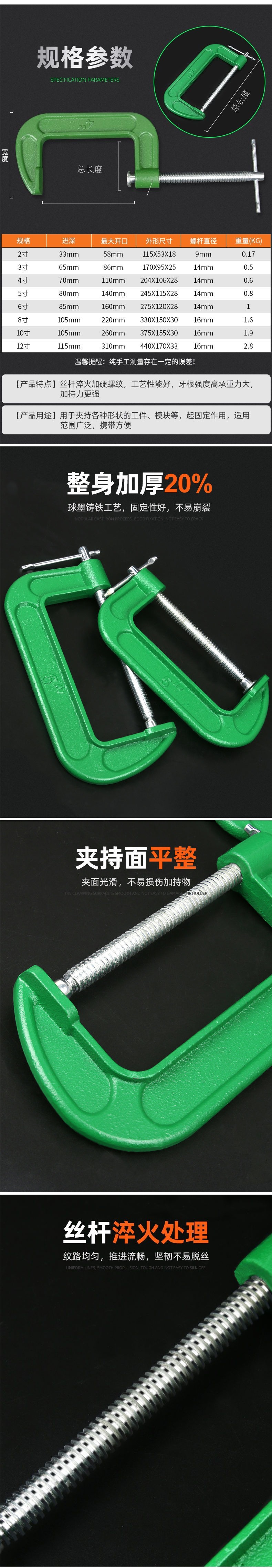 • 업그레이드된 두꺼운 G형 클램프【 6inch 】클램핑 180mm