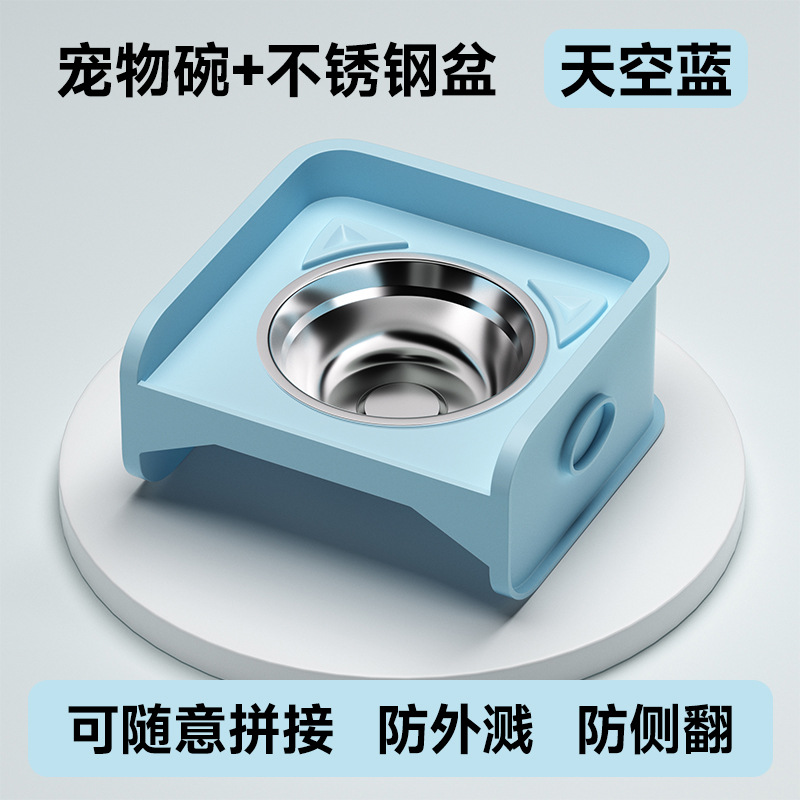 블록형 고양이 밥그릇과 식탁용 물그릇을 결합하여 사용할 수 있는 고양이 밥그릇, 새끼 고양이 밥그릇, 애완동물 밥그릇, 작은 사각형스토어 가기