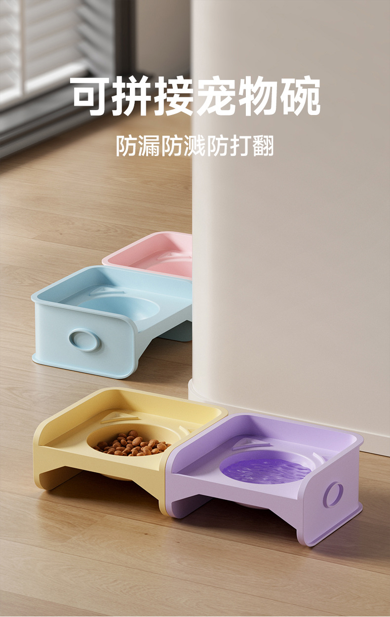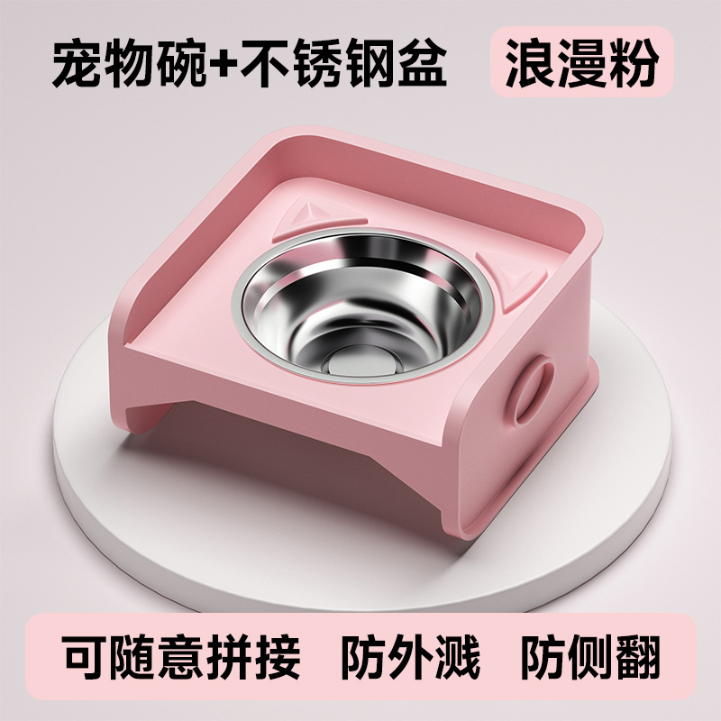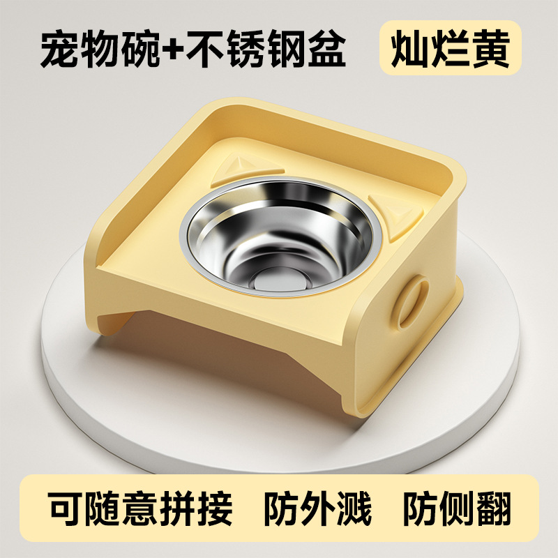블록형 고양이 밥그릇과 식탁용 물그릇을 결합하여 사용할 수 있는 고양이 밥그릇, 새끼 고양이 밥그릇, 애완동물 밥그릇, 작은 사각형