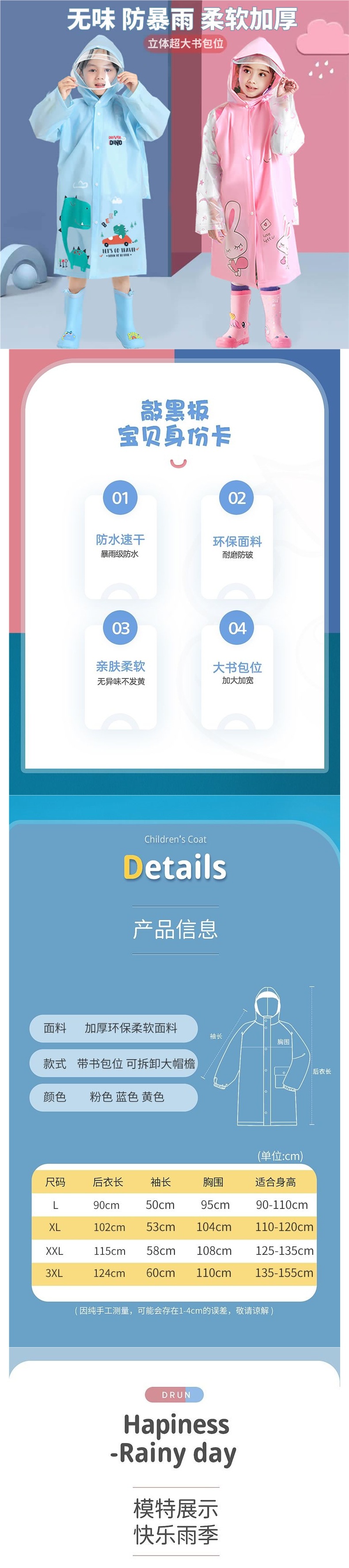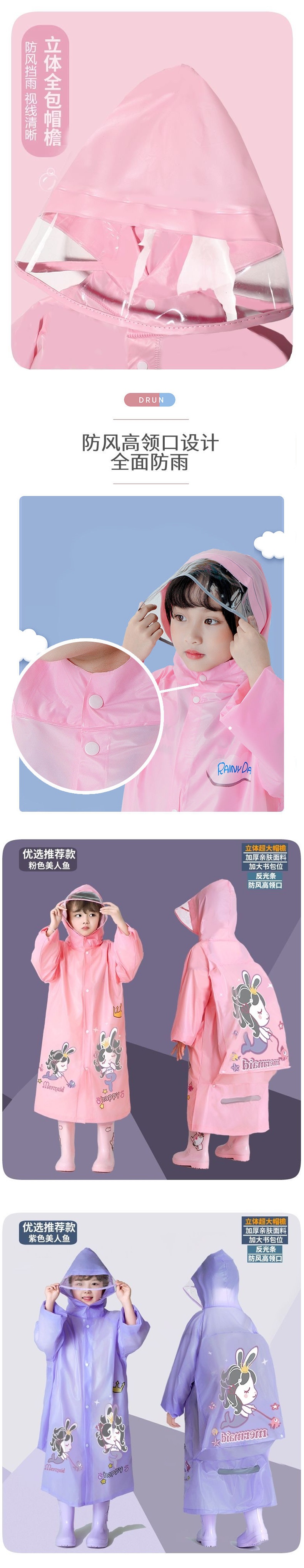 남아, 여아, 유치원생, 초등학생, 중대형 어린이를 위한 책가방이 달린 아동 비옷스토어 가기