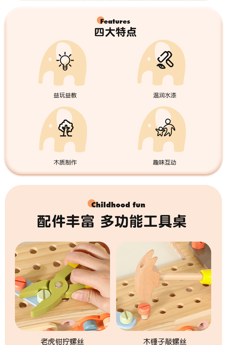 나무 놀이 집 어린이 수리 도구 테이블 대형 교육 장난감 세트 실습 분해 및 조립 나사 소년 MS스토어 가기