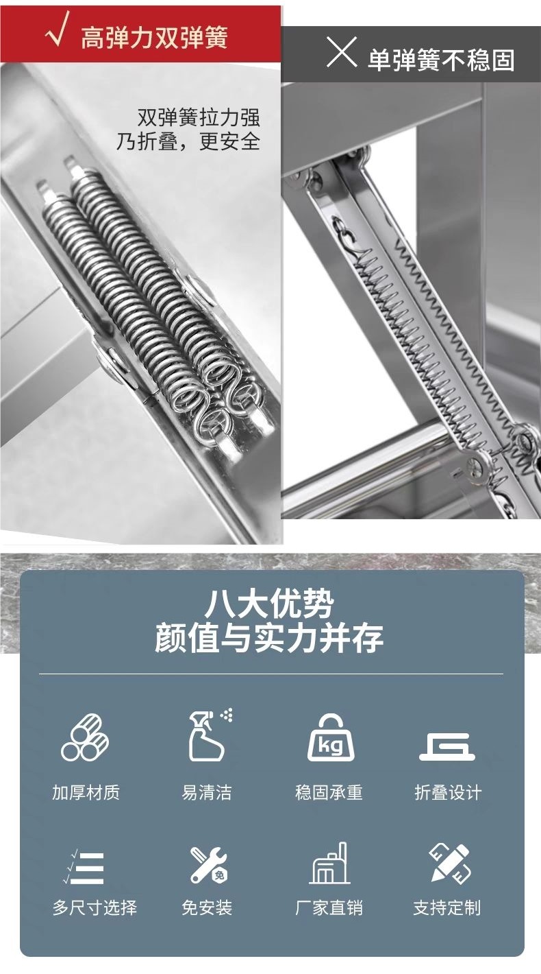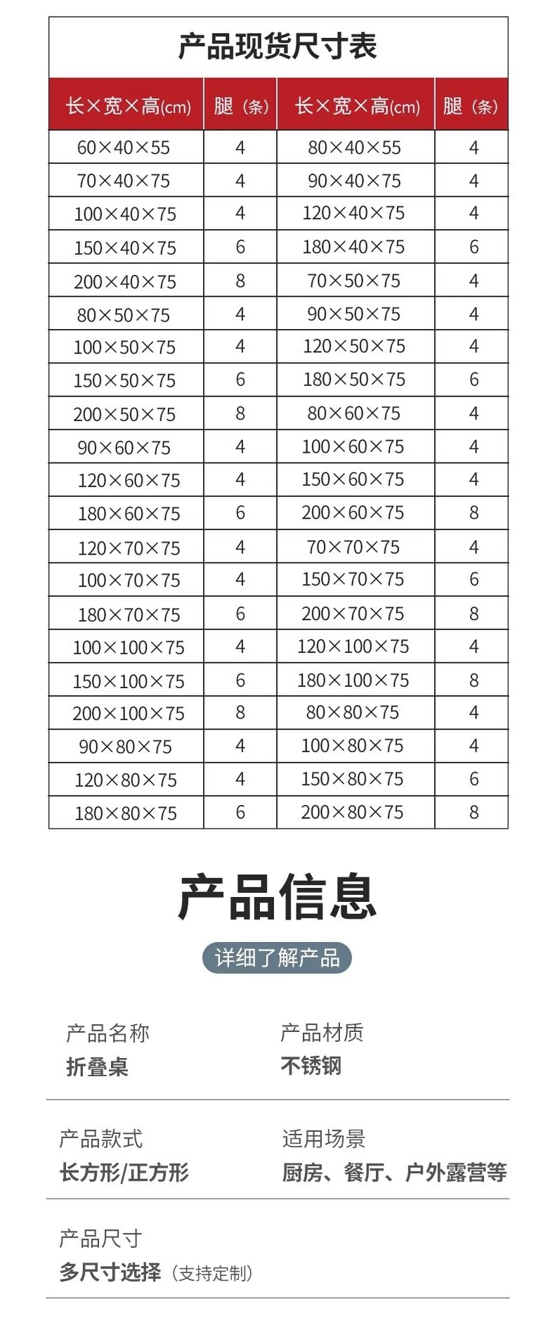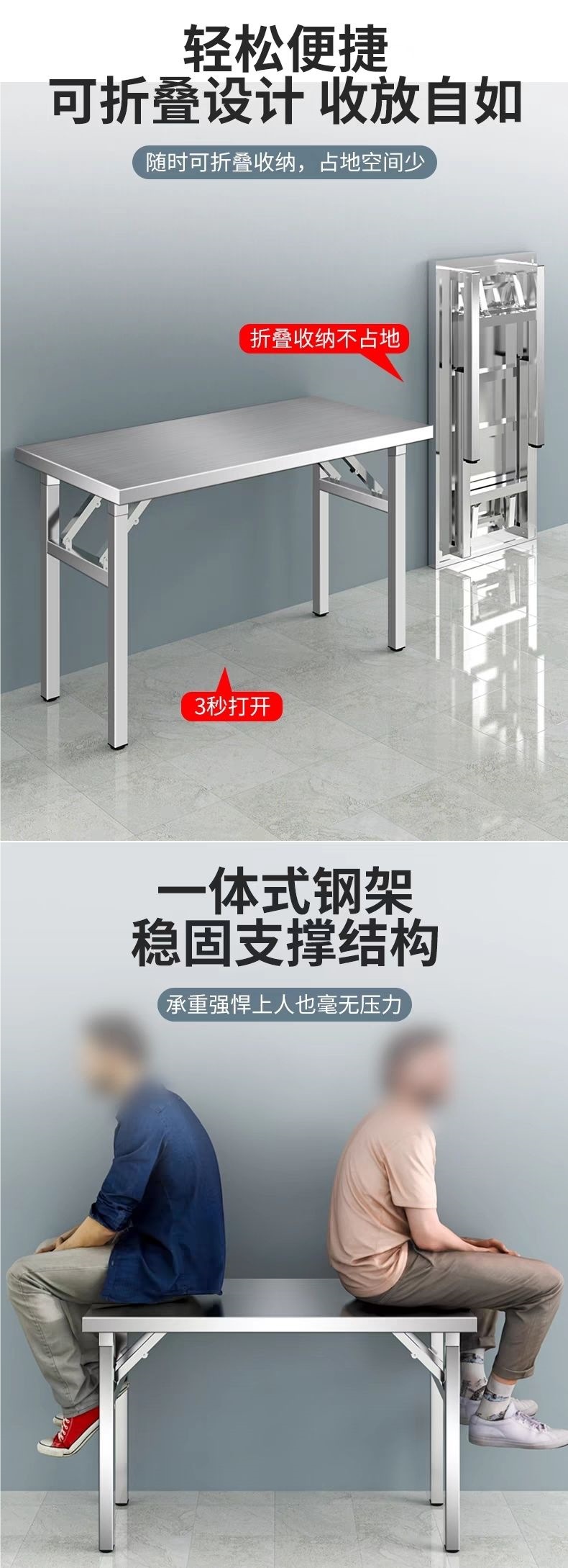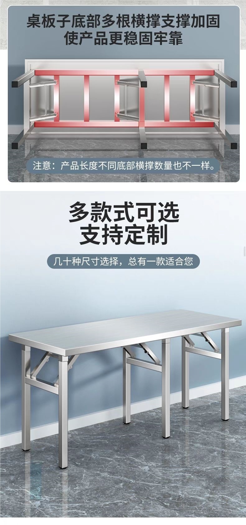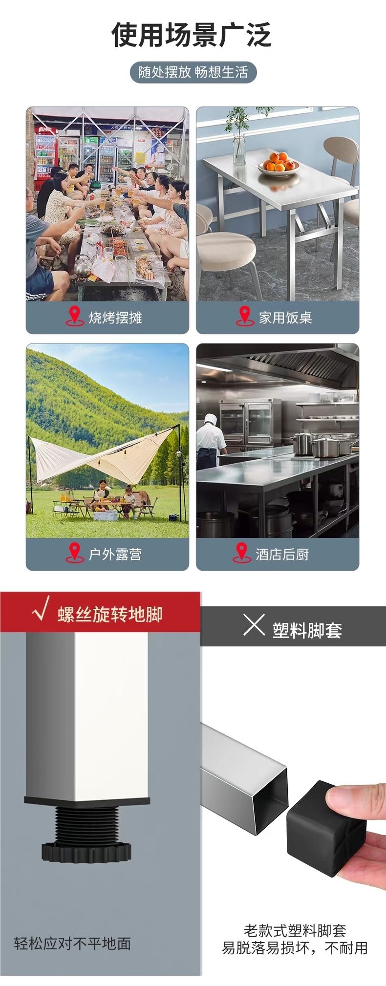• 4cm 조리대 스테인레스 스틸 접이식 테이블 + 아연 도금 다리 조합