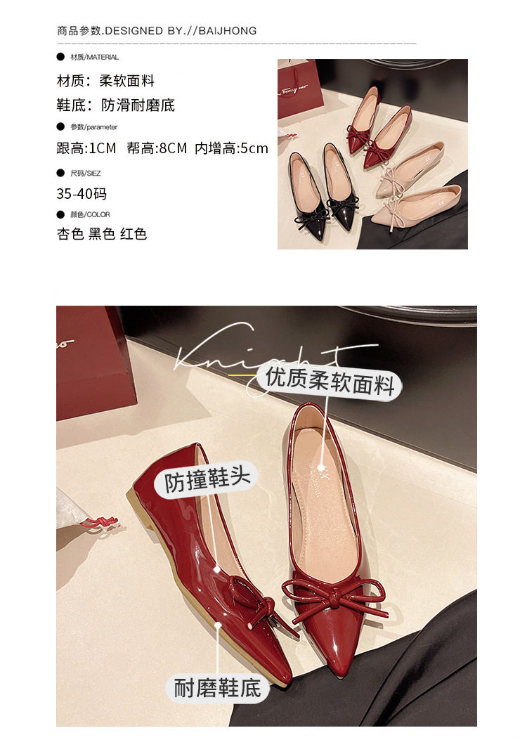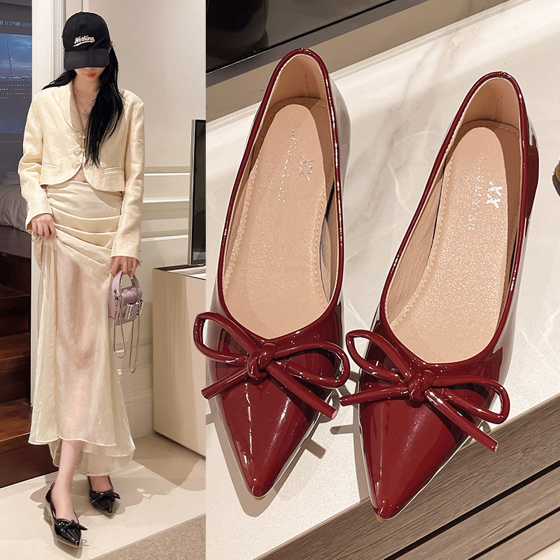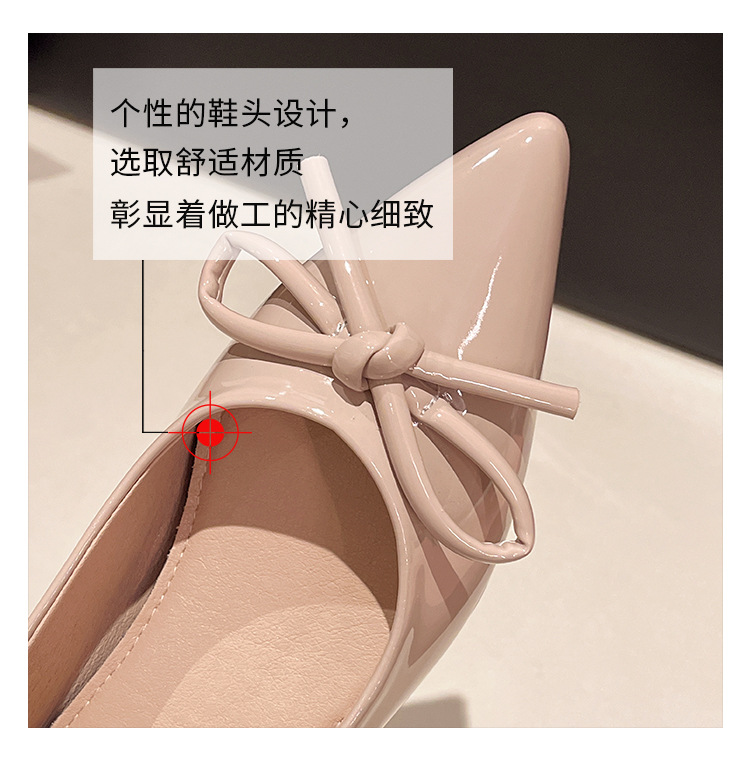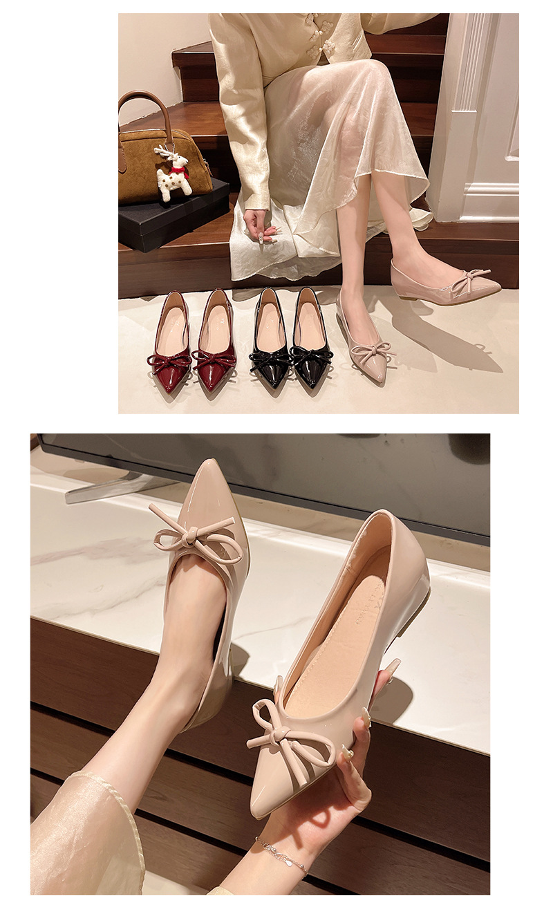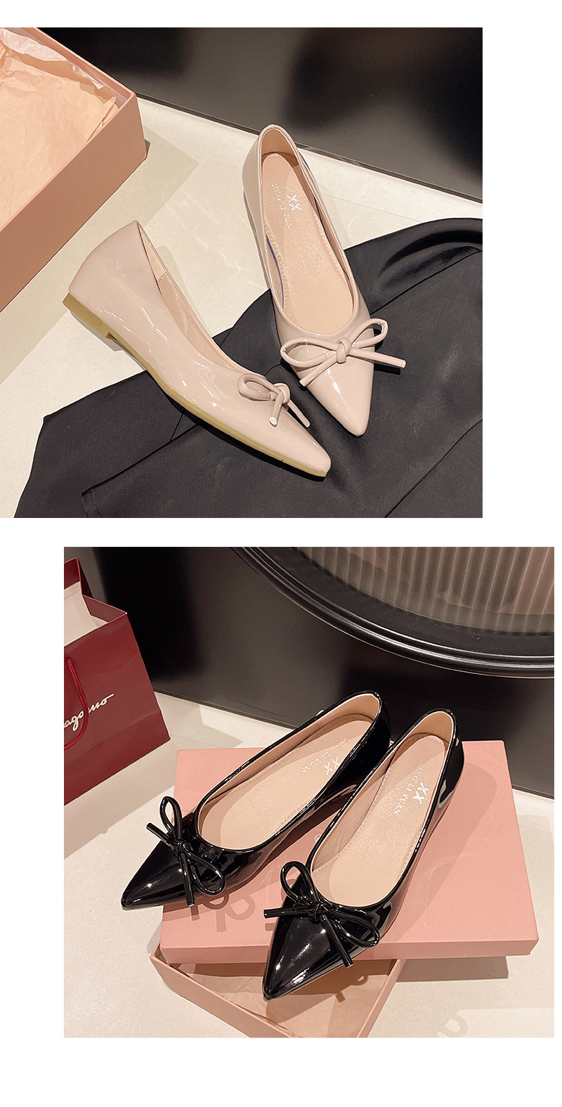 2025 신상 프렌치 누드 컬러 포인티드 토 여성용 키높이 슈즈, 리본매듭, 얕은 입구, 다용도 통근 플랫슈즈스토어 가기