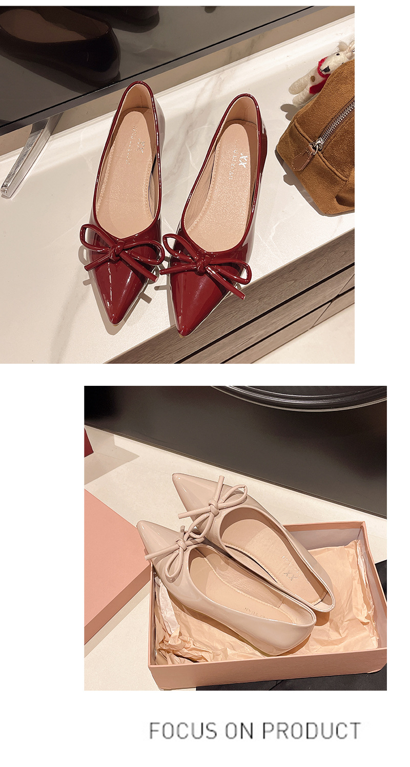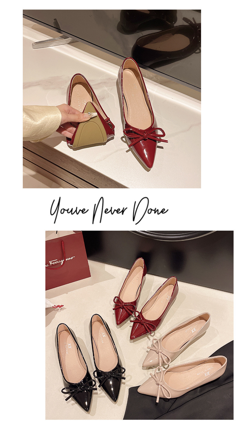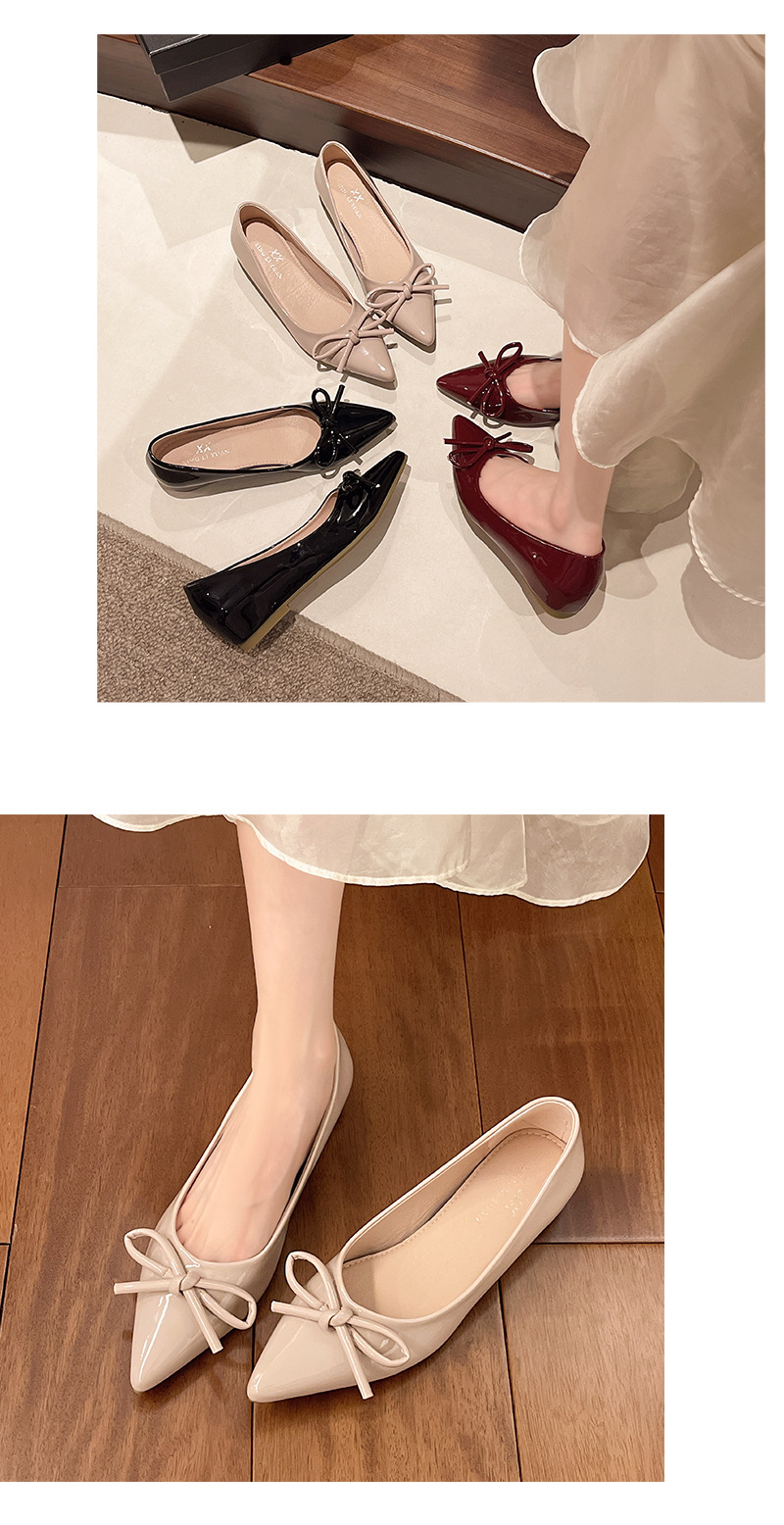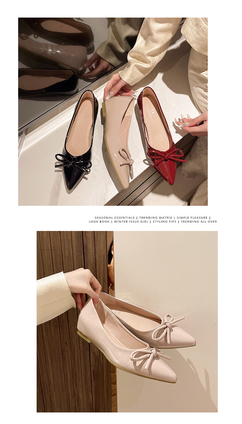 2025 신상 프렌치 누드 컬러 포인티드 토 여성용 키높이 슈즈, 리본매듭, 얕은 입구, 다용도 통근 플랫슈즈스토어 가기