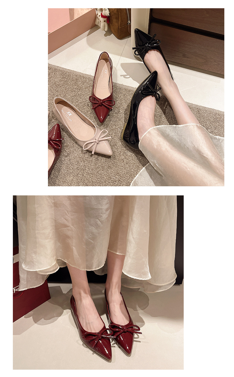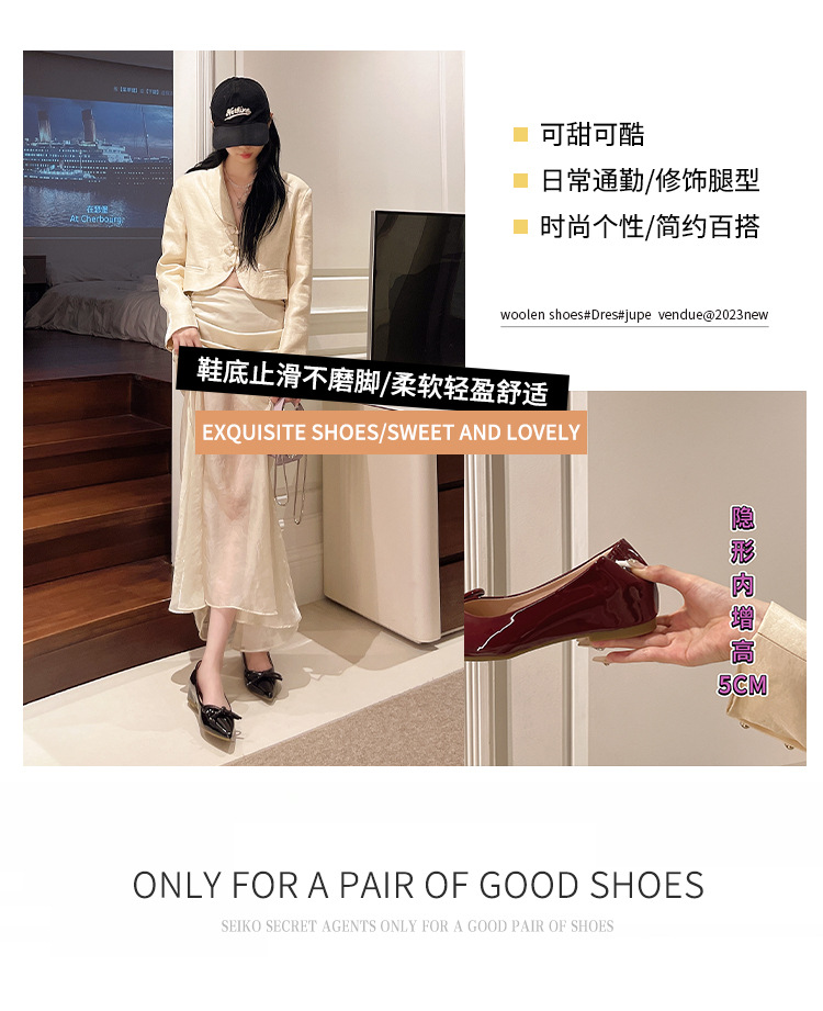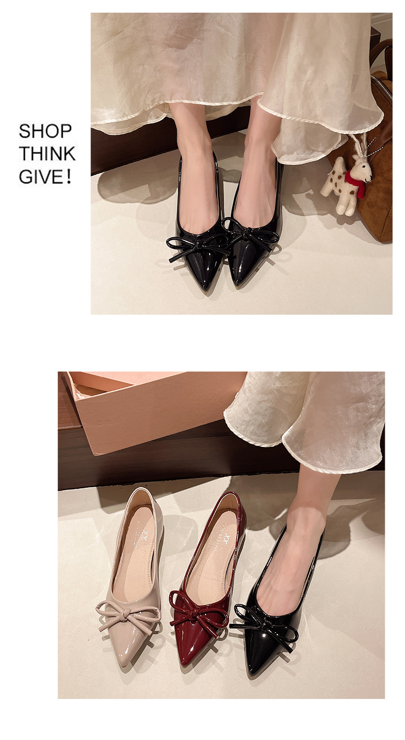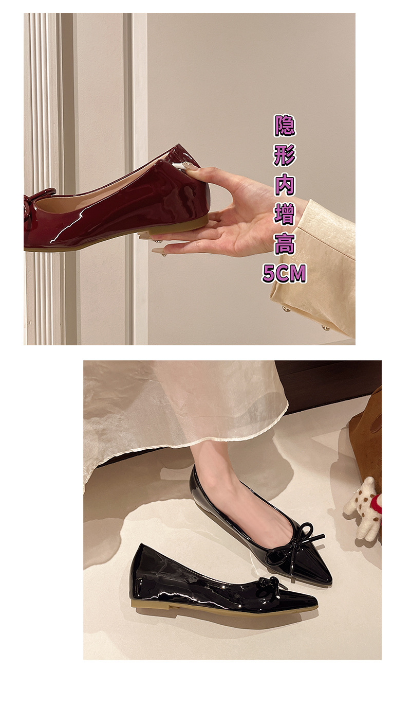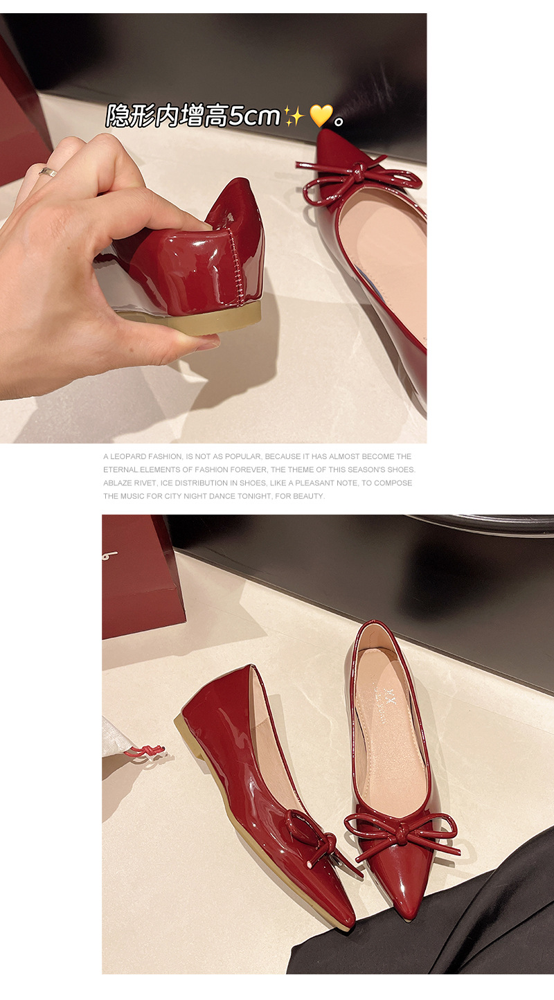 2025 신상 프렌치 누드 컬러 포인티드 토 여성용 키높이 슈즈, 리본매듭, 얕은 입구, 다용도 통근 플랫슈즈스토어 가기