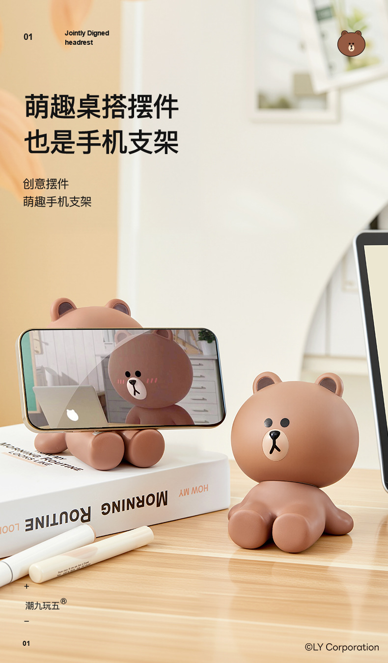 브라운 베어 데스크탑 휴대 전화 홀더 귀여운 만화 사무실 장식품 홈 크리 에이 티브 장식 드라마 추적 유물