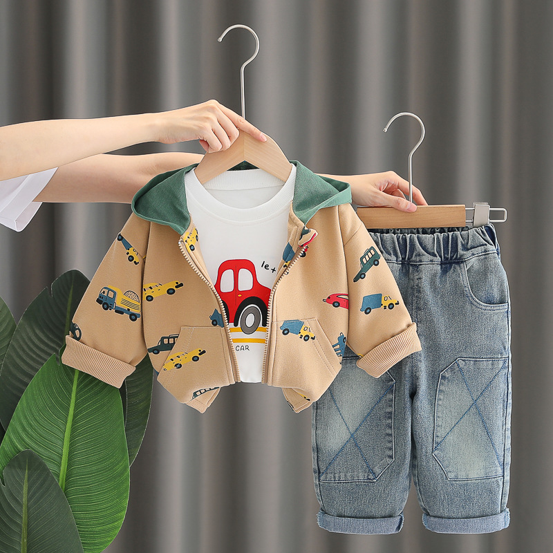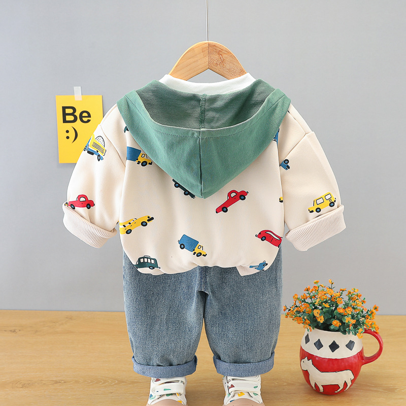 소년 가을 정장 2025 새로운 어린 소년 봄, 가을 빨간색 자동차 모자 후드 재킷 아기 소년 가을 3 피스 세트스토어 가기