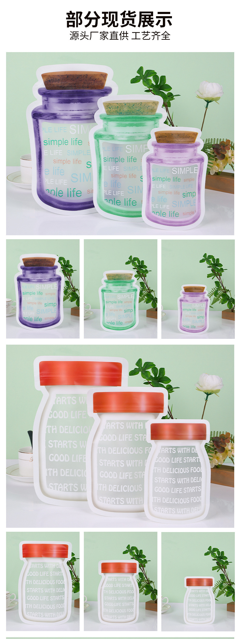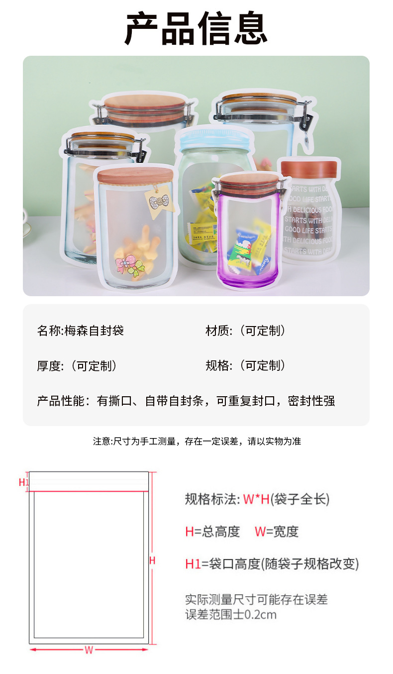 식품등급 원료 신선도 유지 밀봉봉투 메이슨병 지퍼백 캔디 스낵 비스킷 귀여운 포장봉지 재고 있음스토어 가기