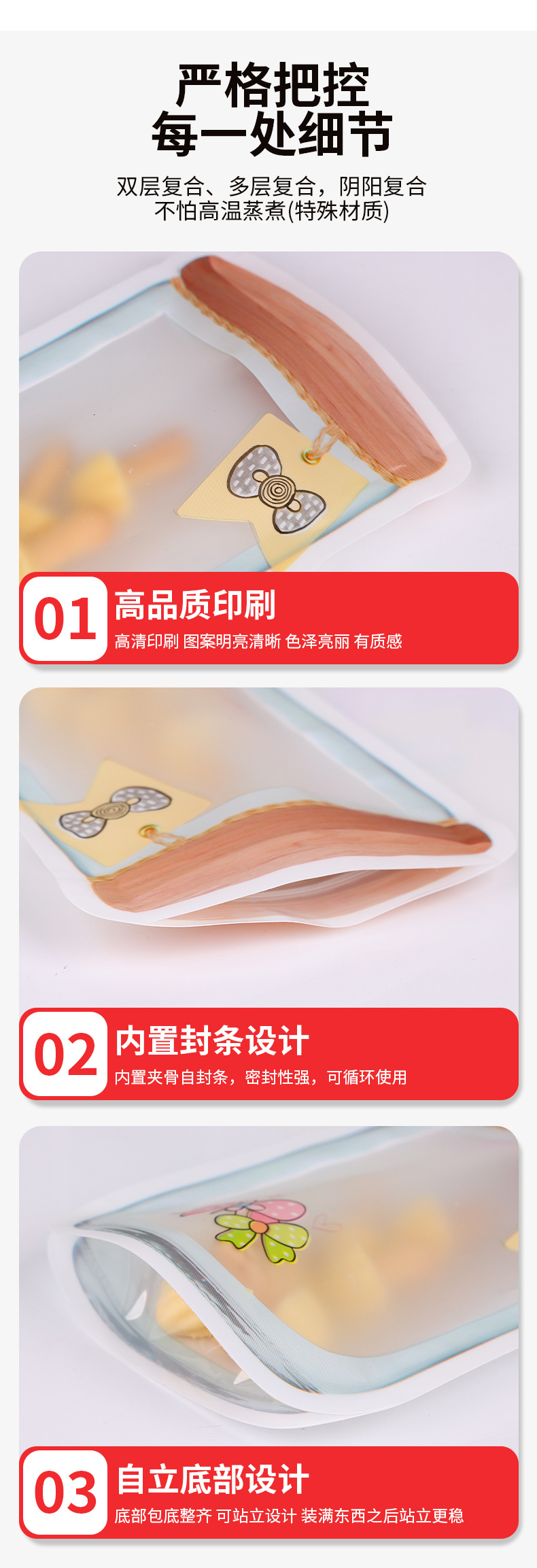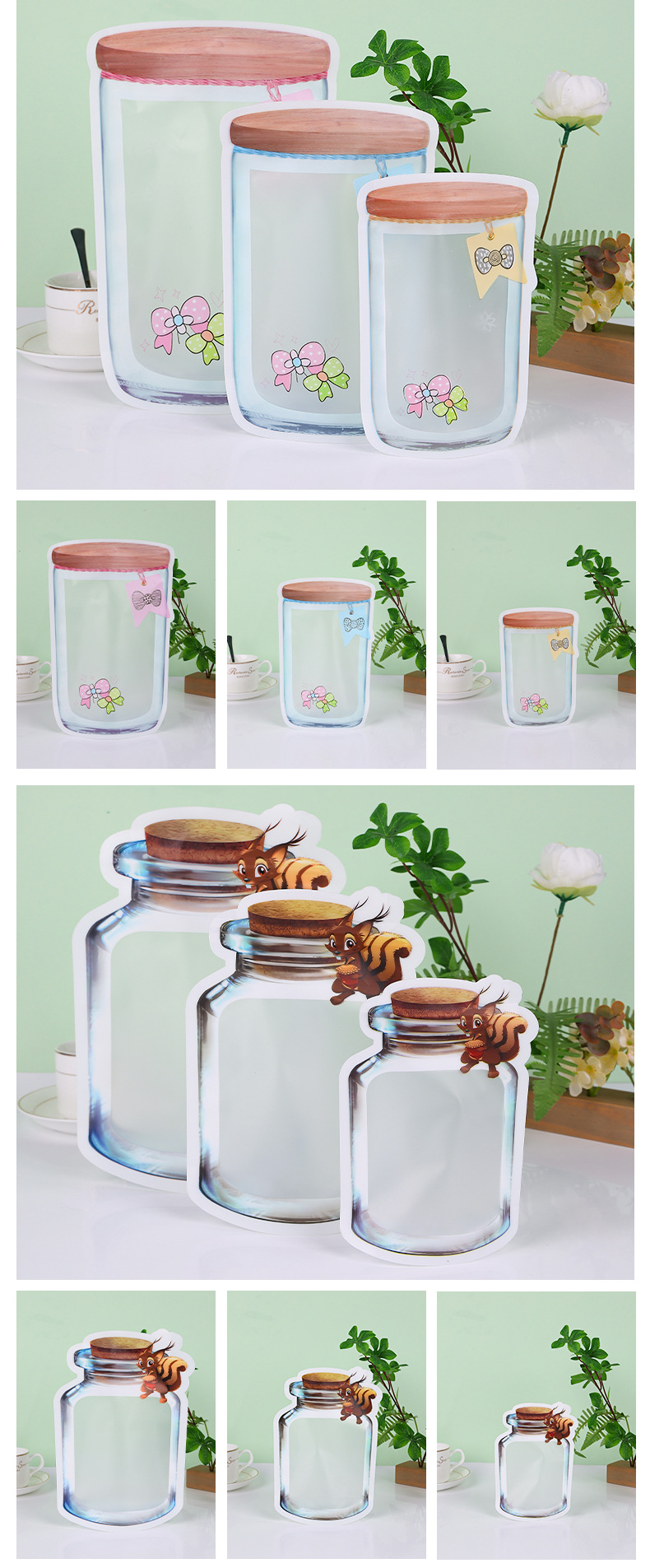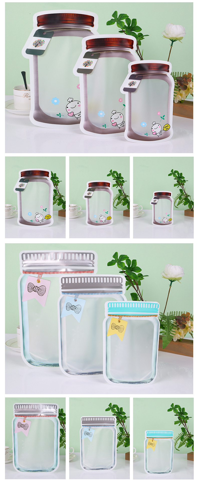 식품등급 원료 신선도 유지 밀봉봉투 메이슨병 지퍼백 캔디 스낵 비스킷 귀여운 포장봉지 재고 있음