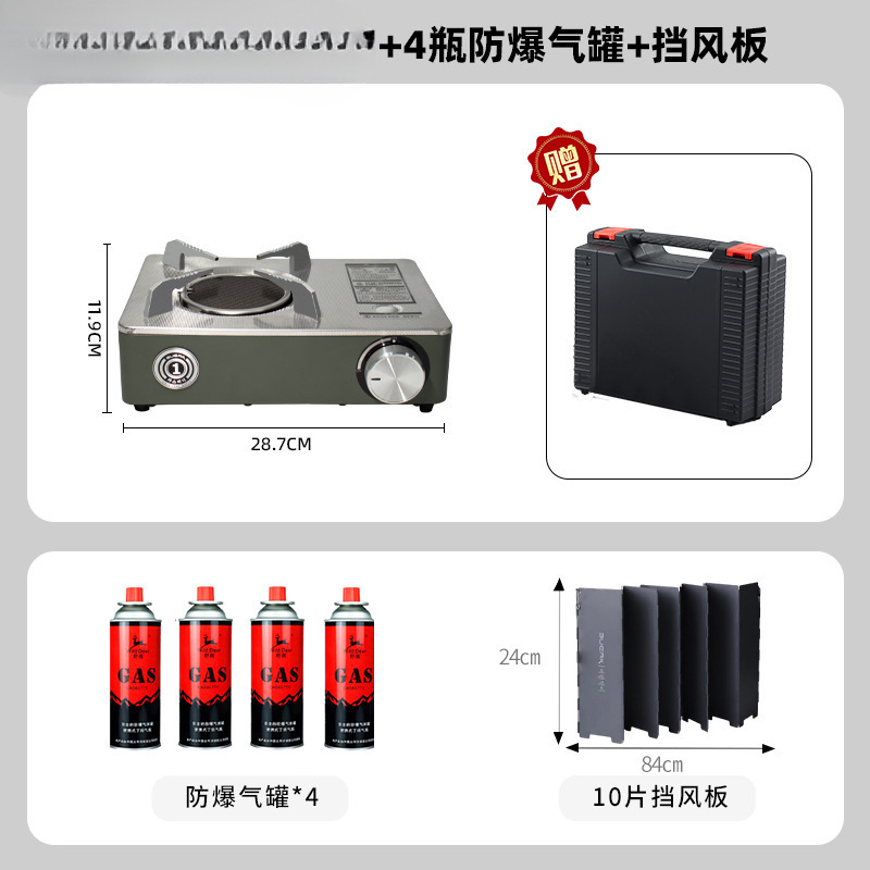 • 한국형 적외선 난로 + 220g 카세트 가스 탱크 4개 + 회색 앞유리