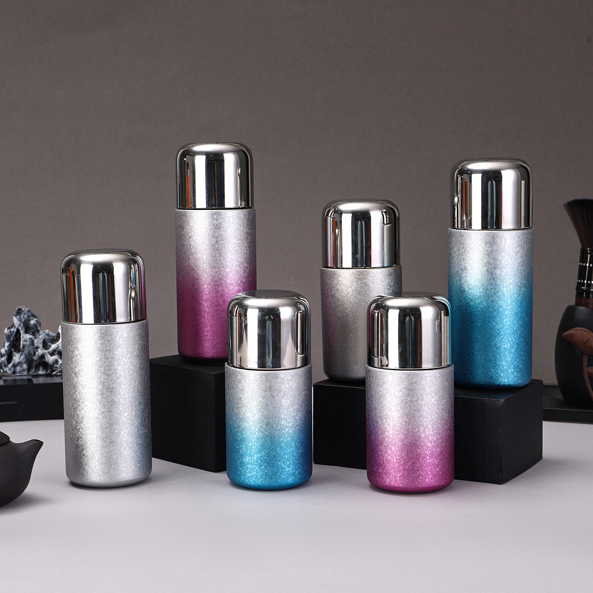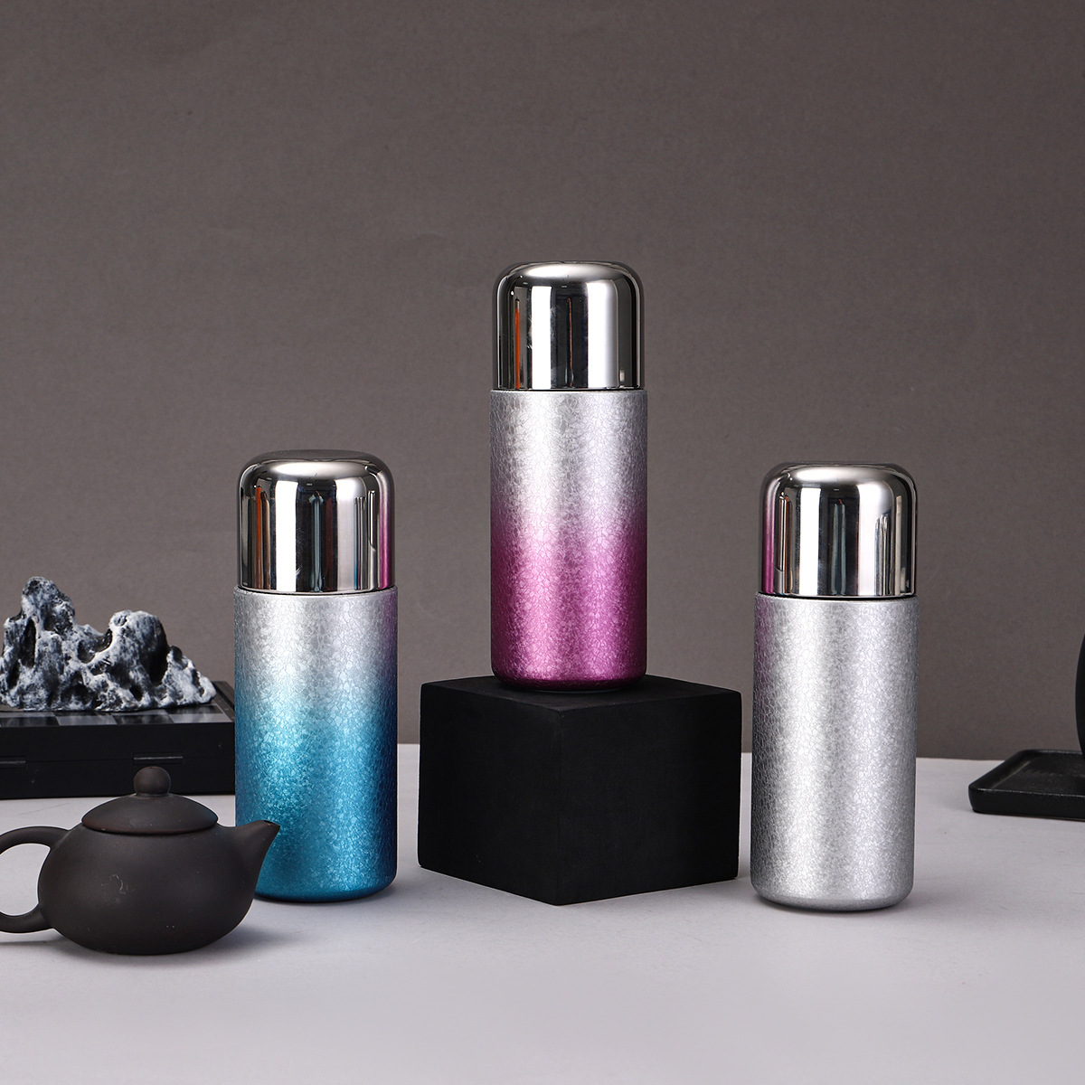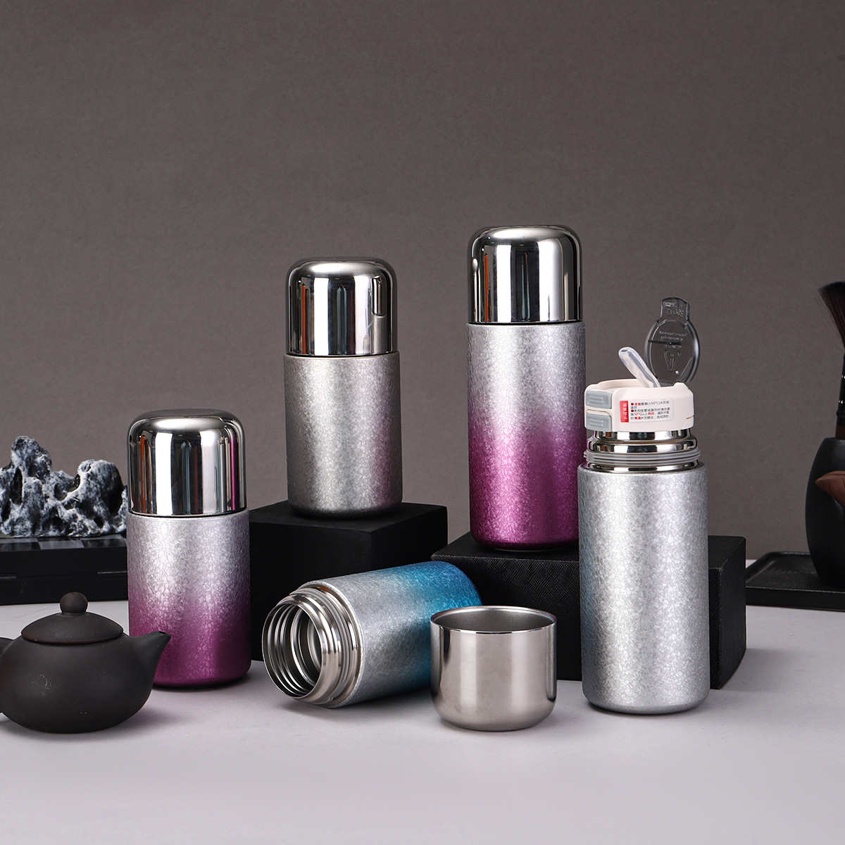 새로운 티타늄 코팅 캡슐 포켓 컵, 고급스러운 이중 음료 빨대 보온병 컵, 미니 휴대용 고급 찌개 티컵 도매