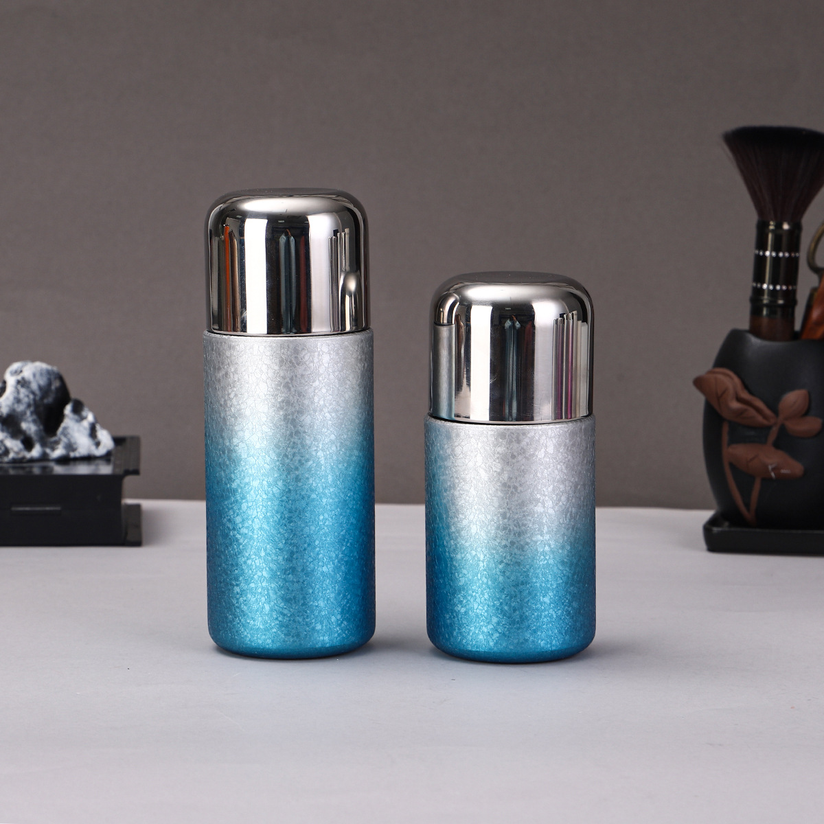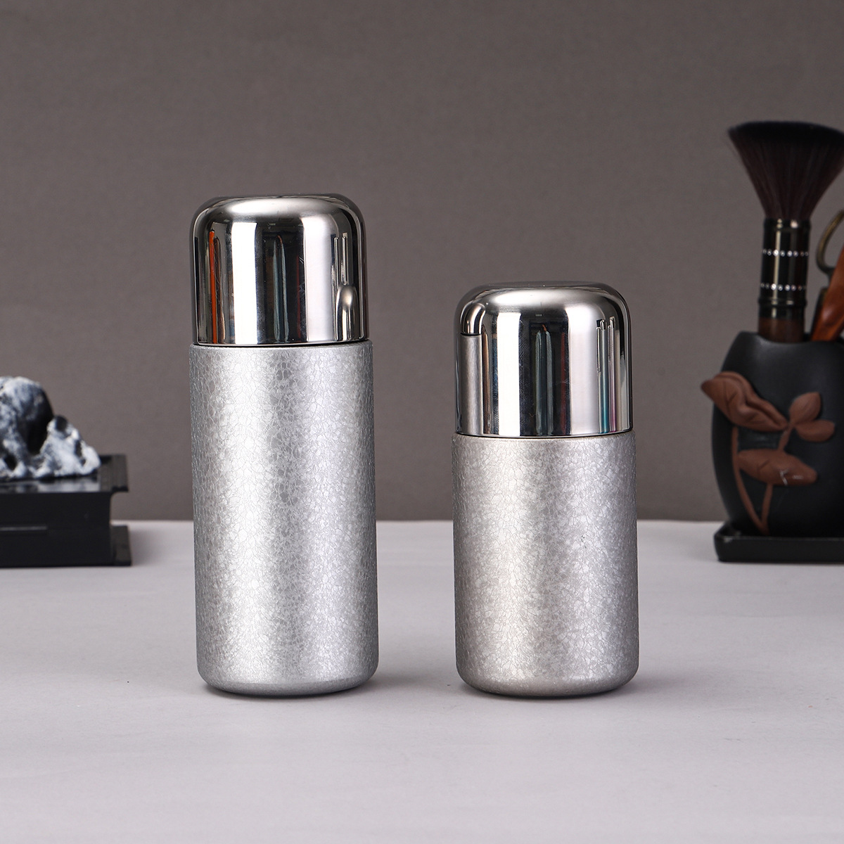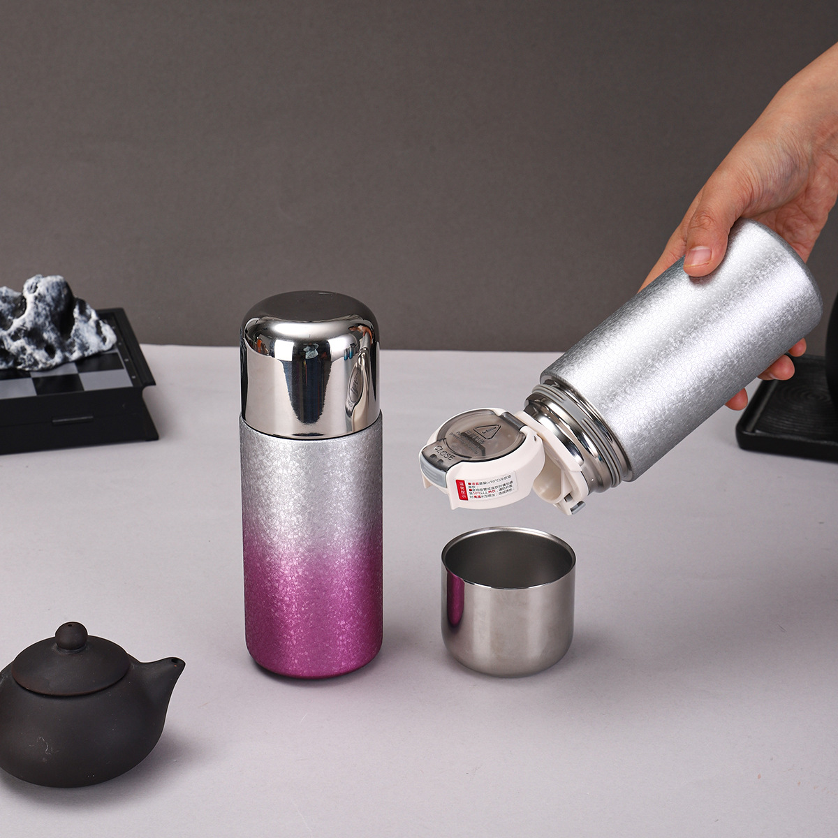새로운 티타늄 코팅 캡슐 포켓 컵, 고급스러운 이중 음료 빨대 보온병 컵, 미니 휴대용 고급 찌개 티컵 도매