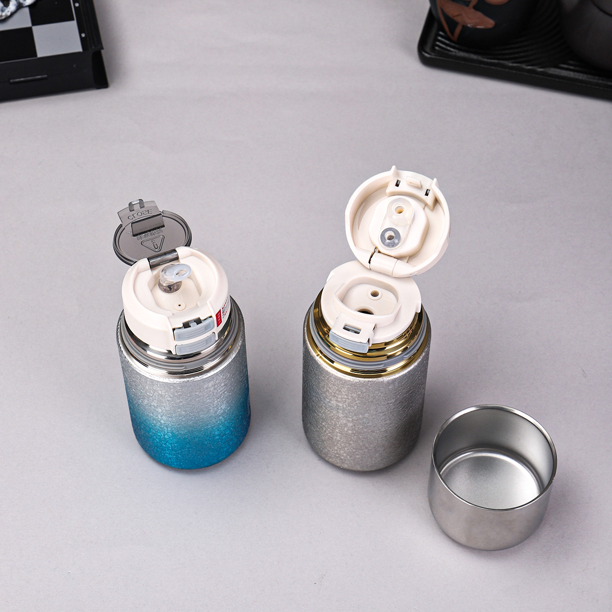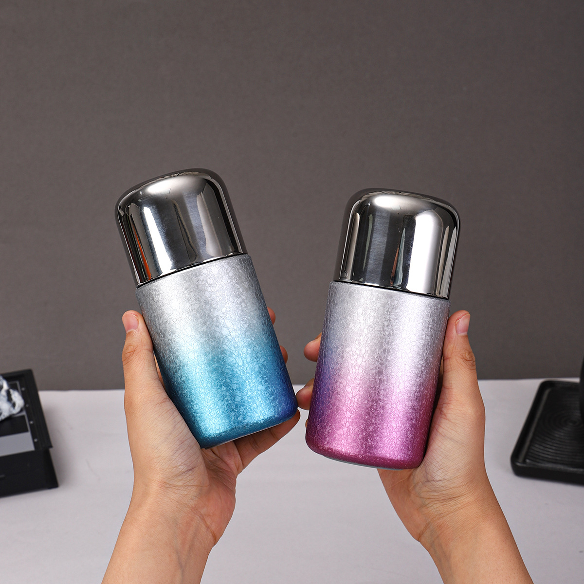 새로운 티타늄 코팅 캡슐 포켓 컵, 고급스러운 이중 음료 빨대 보온병 컵, 미니 휴대용 고급 찌개 티컵 도매스토어 가기