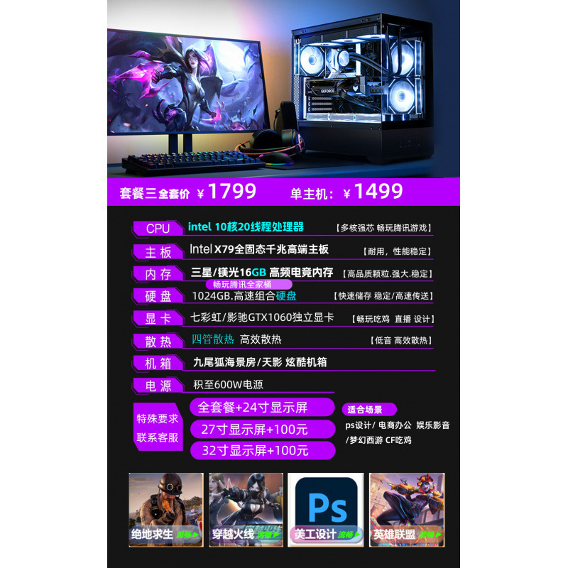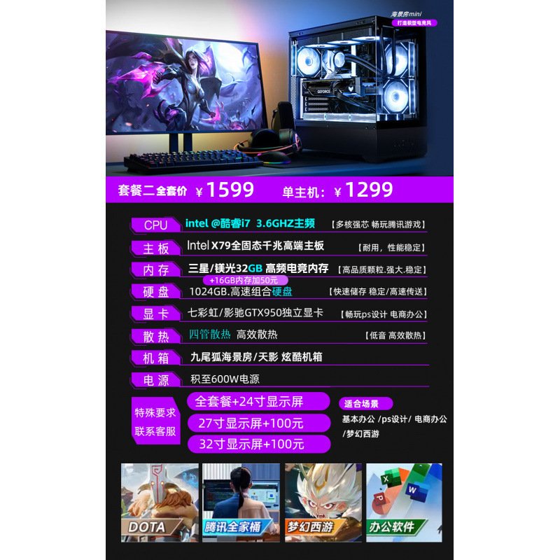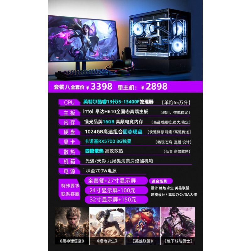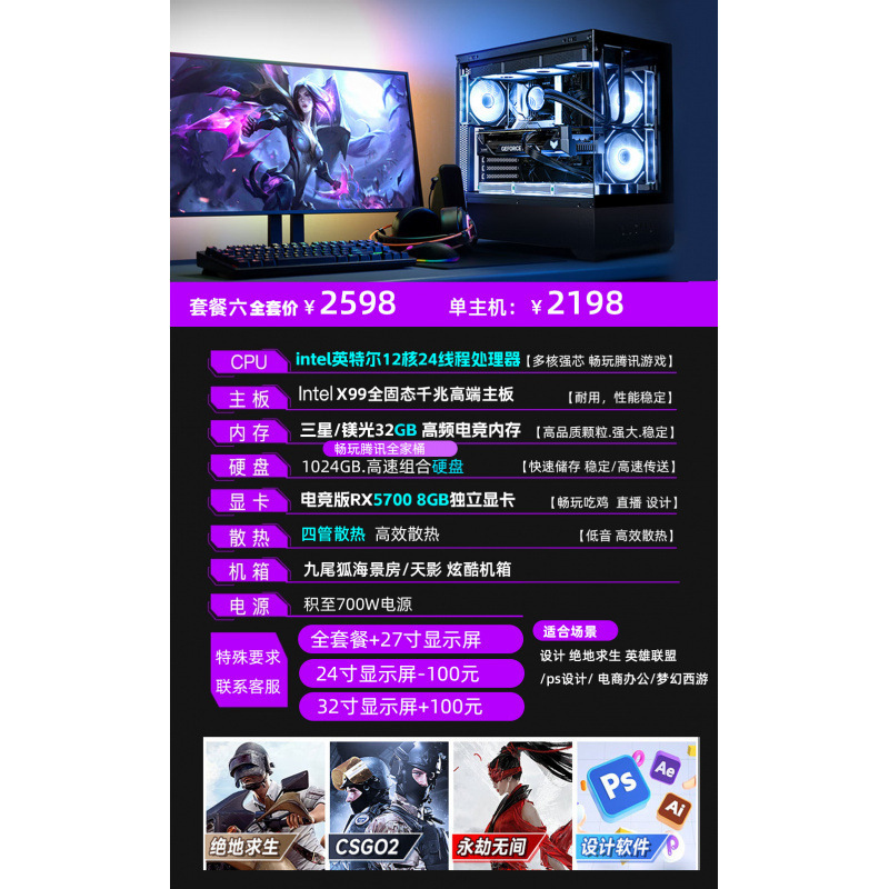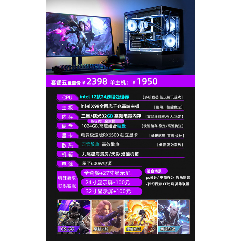 코어/데스크탑 컴퓨터 호스트, 고성능 치킨 게임, e스포츠 사무실 전체 세트