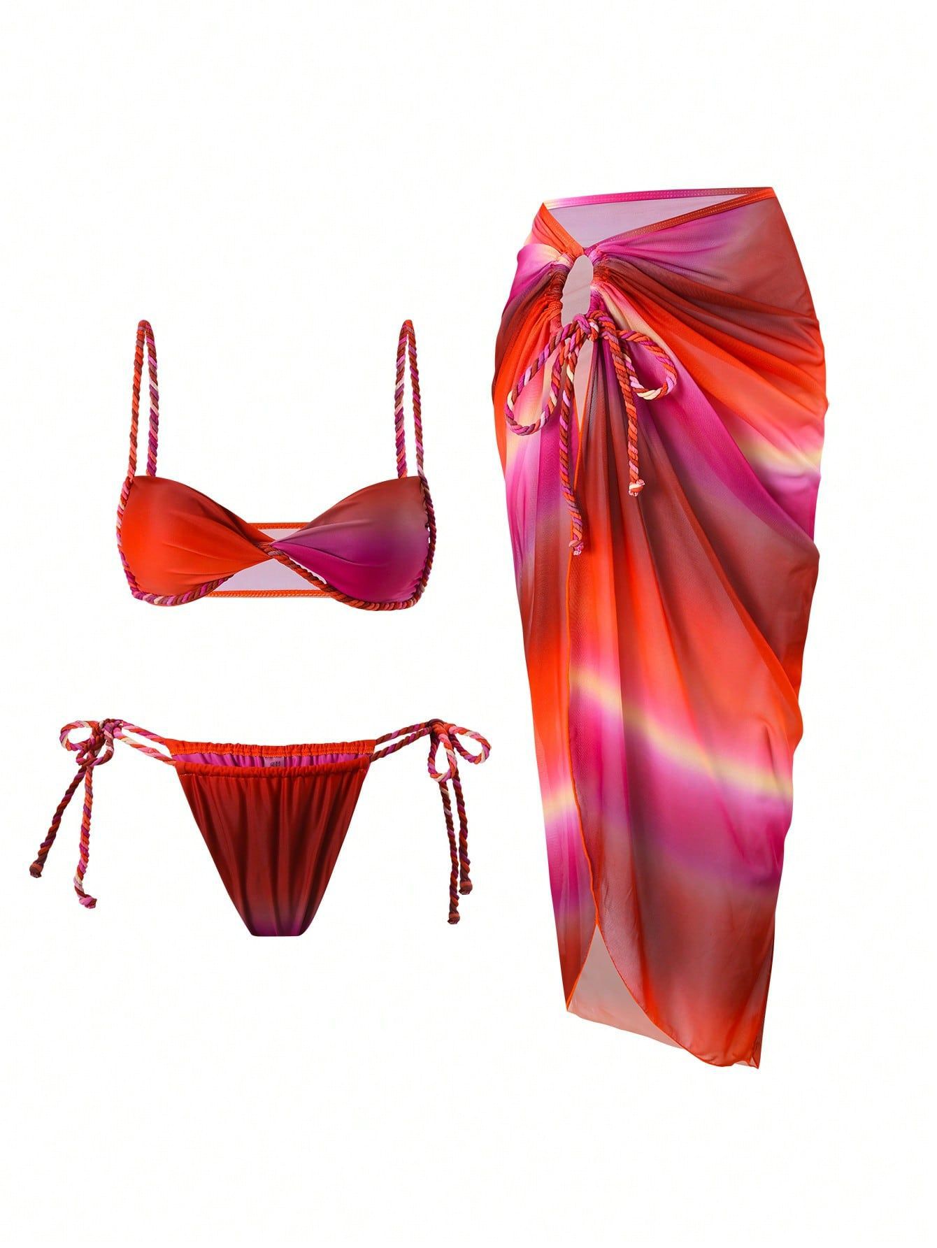 비키니2025 유럽 및 미국 해외 직구 중동 스타일 불규칙한 타이다이 끈 묶음 바닥 길이 비키니 섹시스토어 가기