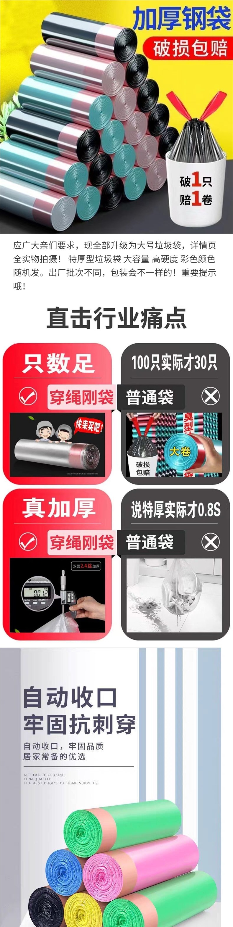 두꺼운 졸라매는 끈 쓰레기 봉투 가정용 두꺼운 휴대용 주방 검정색 대형 학생 기숙사 일회용 비닐 봉투