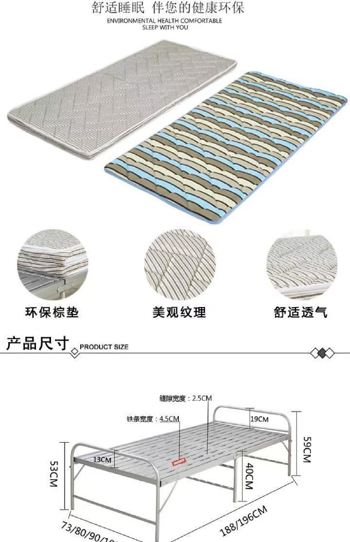 접이식 침대 임대실 싱글 침대 철제 접이식 침대 건설 현장 기숙사 침대 간이 점심 침대 홈 케어 침대