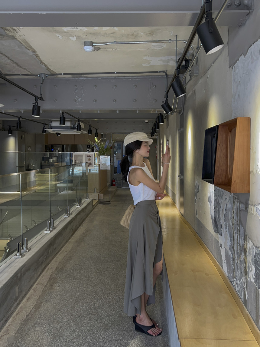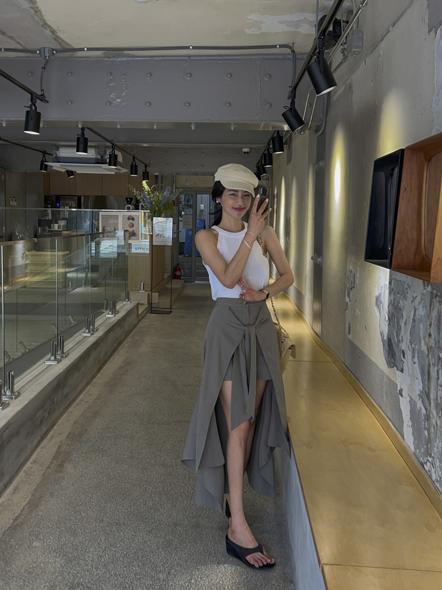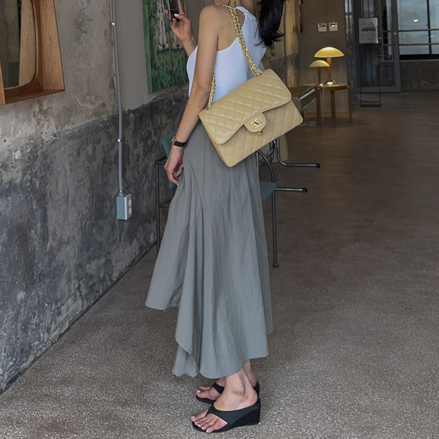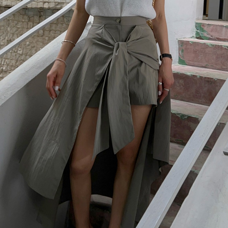 한국 디자인 스트랩 보우 불규칙 스커트 여성 여름 새로운 복고풍 맞춤형 스커트 롱 스커트스토어 가기